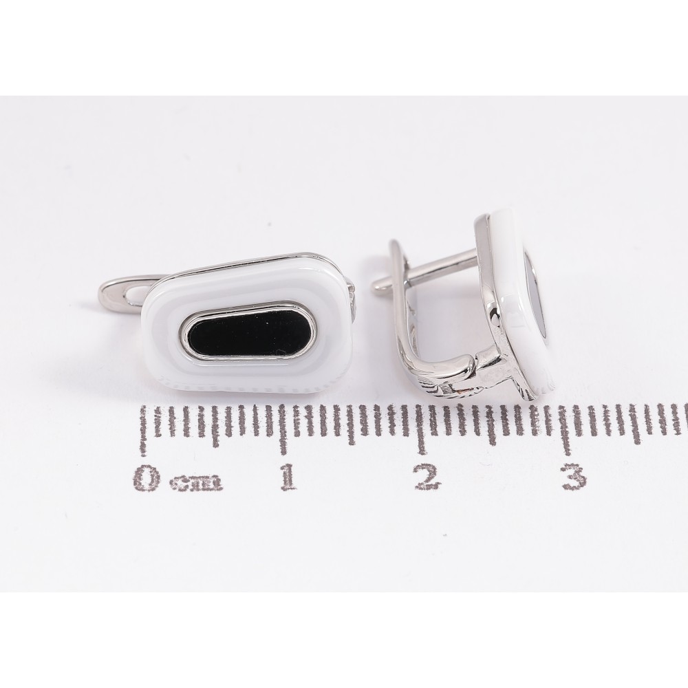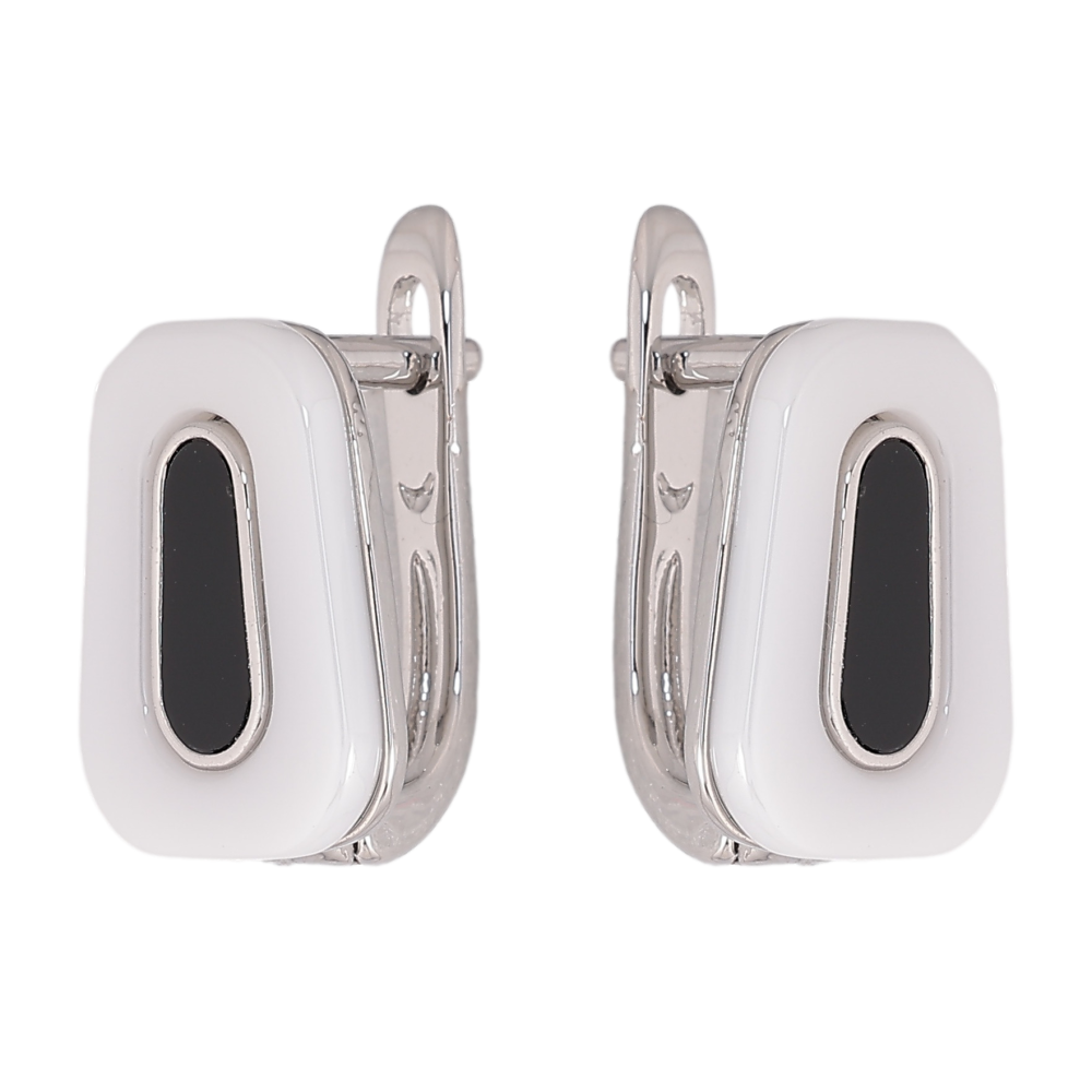 Серьги Xuping TTM Stainless Steel цвет Родий английский замок "Узор из белой керамики с черной вставкой"
