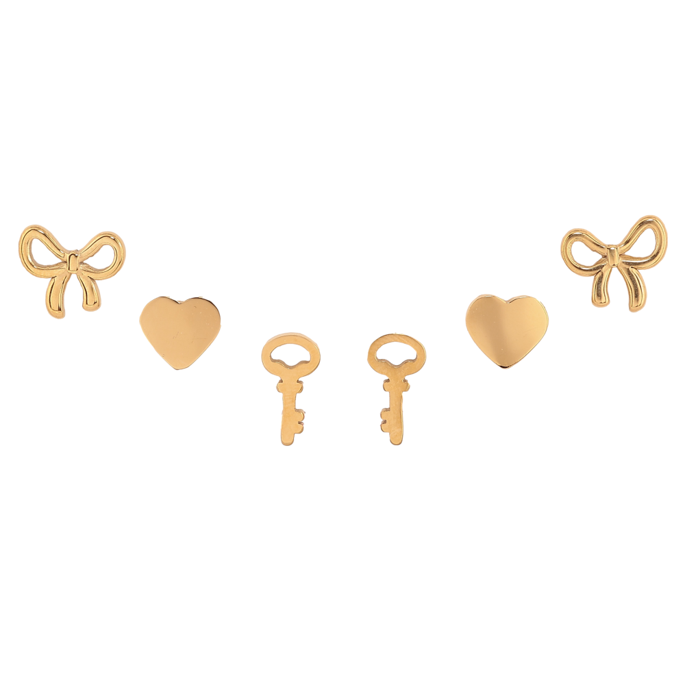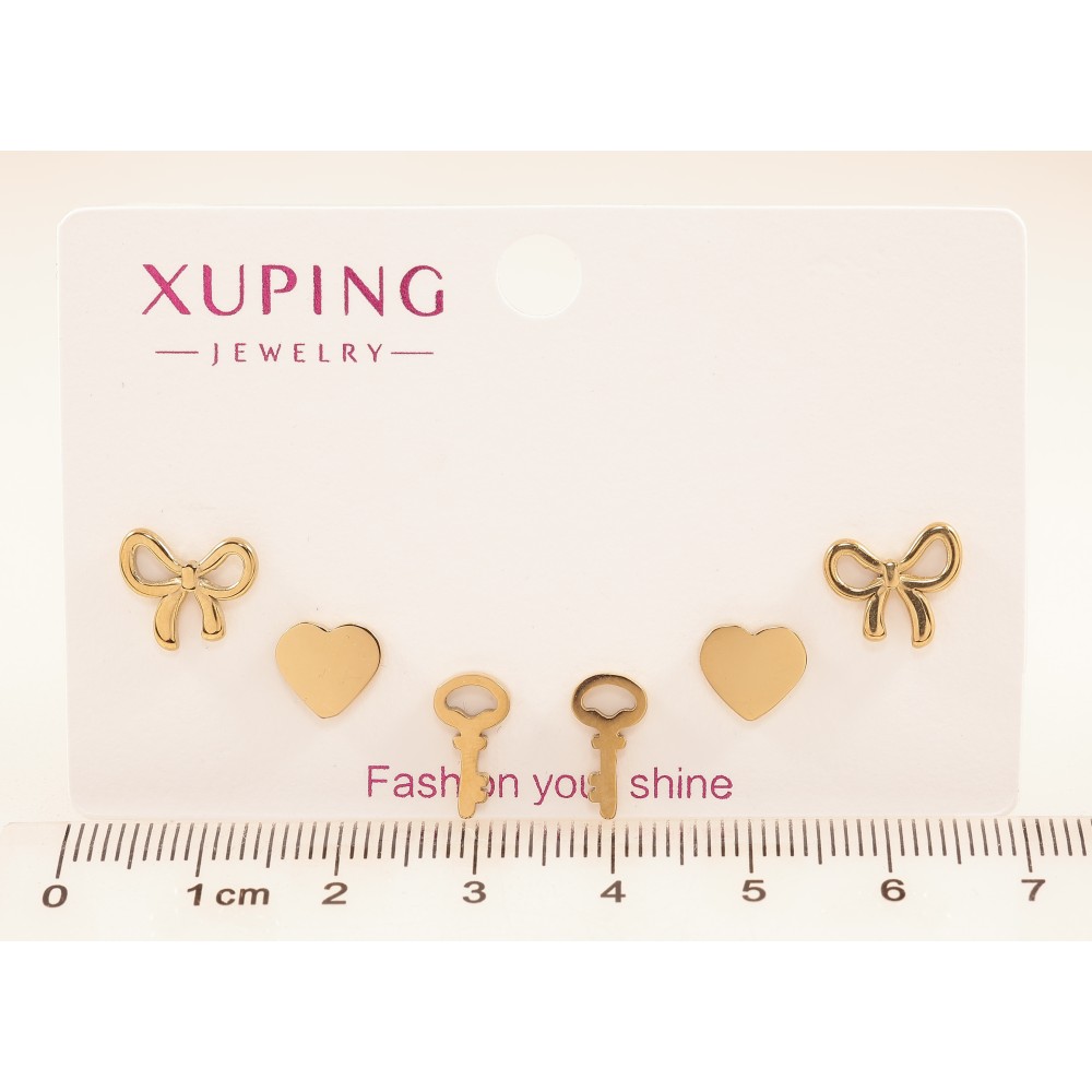Сережки Набір (3 пари) Xuping TTM Stainless Steel колір 14К пусети "Бантики, серця та ключики"