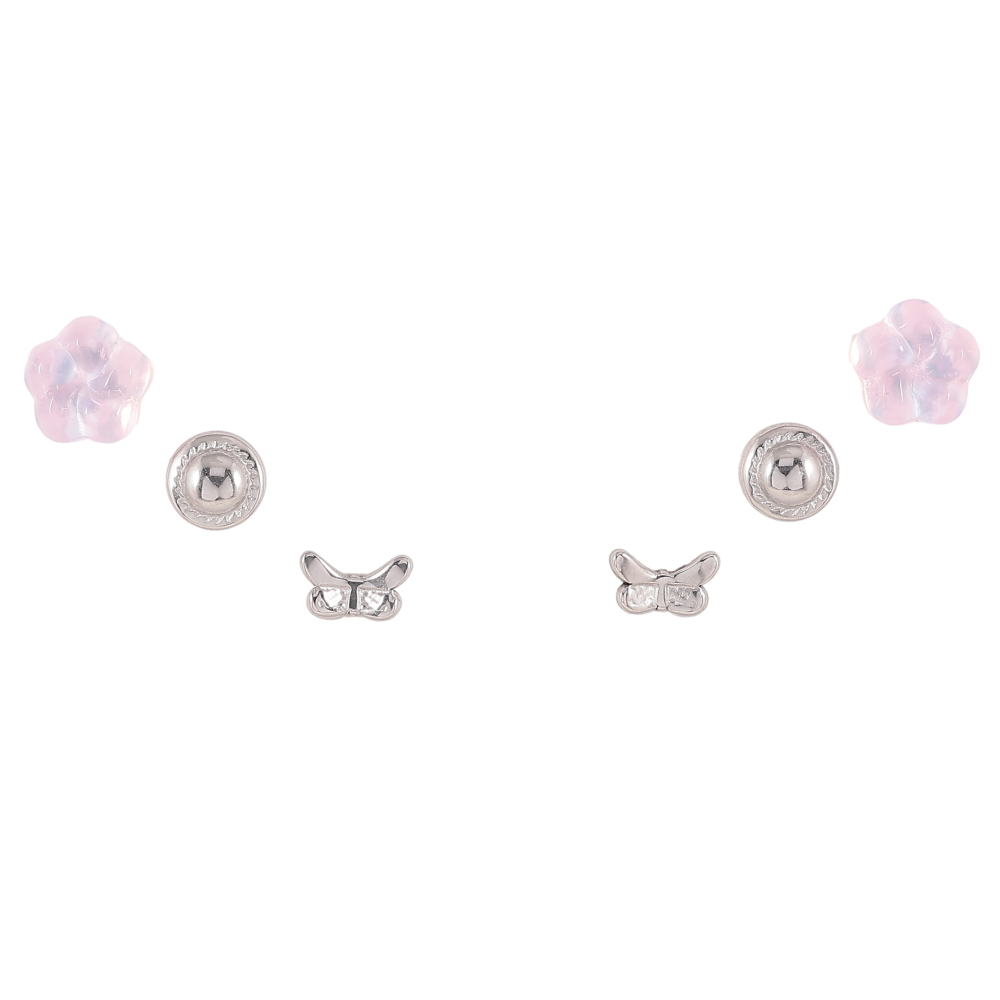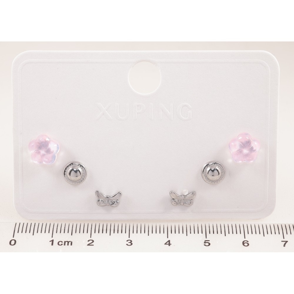 Сережки Набір (3 пари) Xuping TTM Stainless Steel колір Родій пусети "Квіточки, кола та метелики" ø 6мм