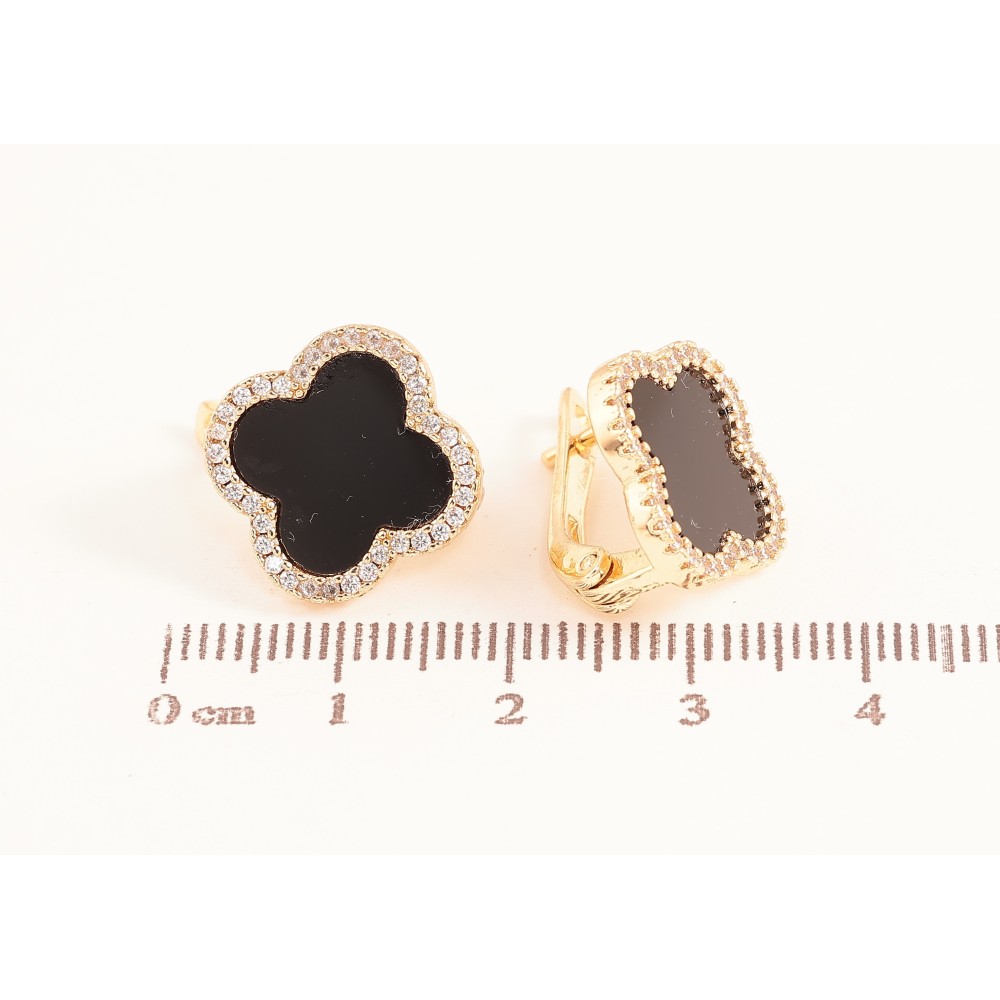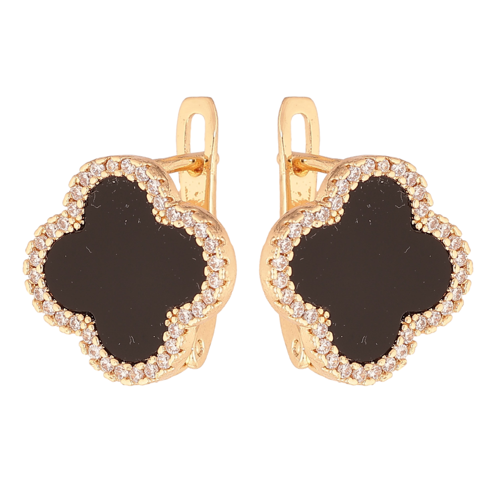 Сережки Нержавіюча сталь англійський замок "Конюшина з чорними вставками та кристалами"