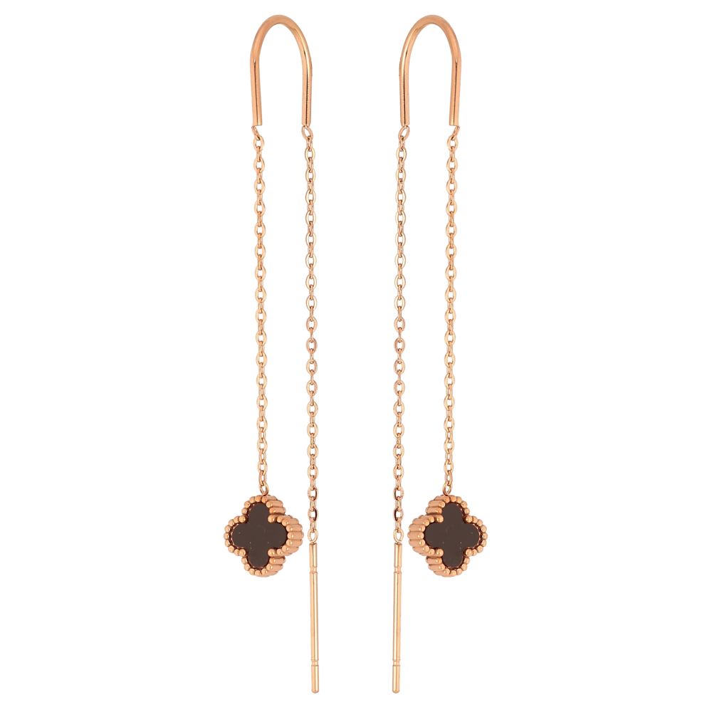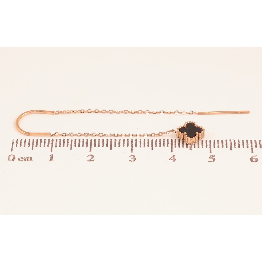 Сережки Нержавіюча сталь протяжки "Конюшина з чорною вставкою на ланцюжку"
