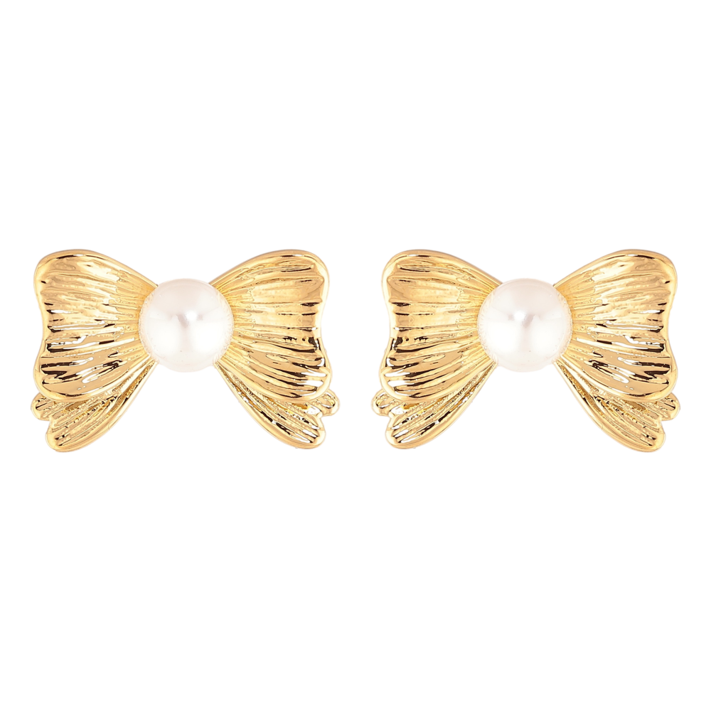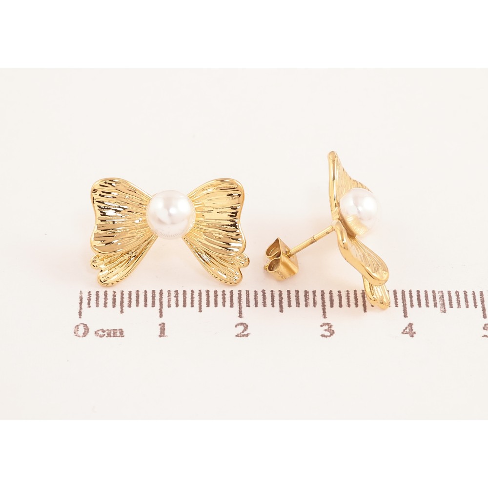 Сережки Нержавіюча сталь пусети "Банти з перлинами" фото №1