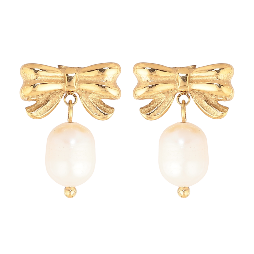 Сережки Нержавіюча сталь пусети "Банти з перлинами"