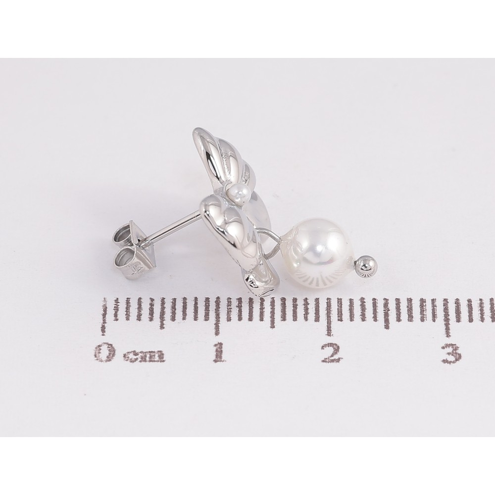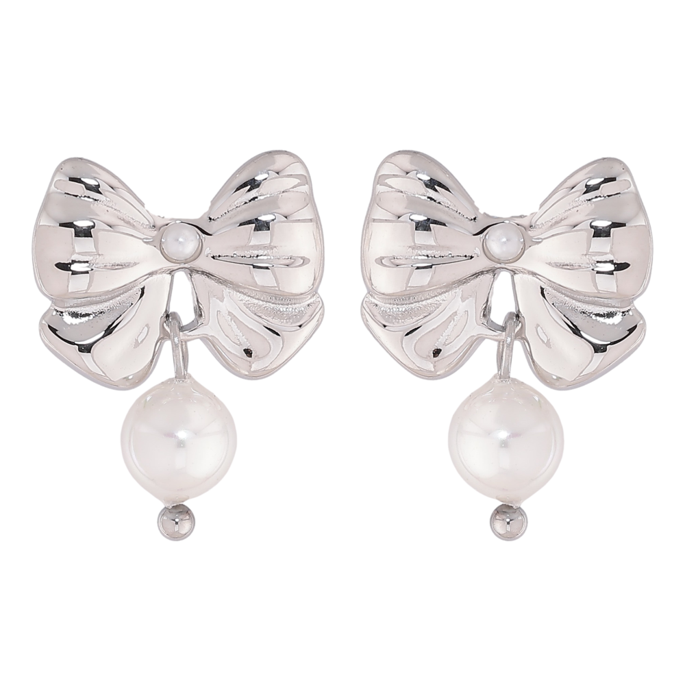 Сережки Нержавіюча сталь пусети "Банти з перлинами"