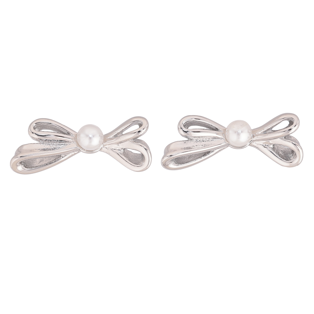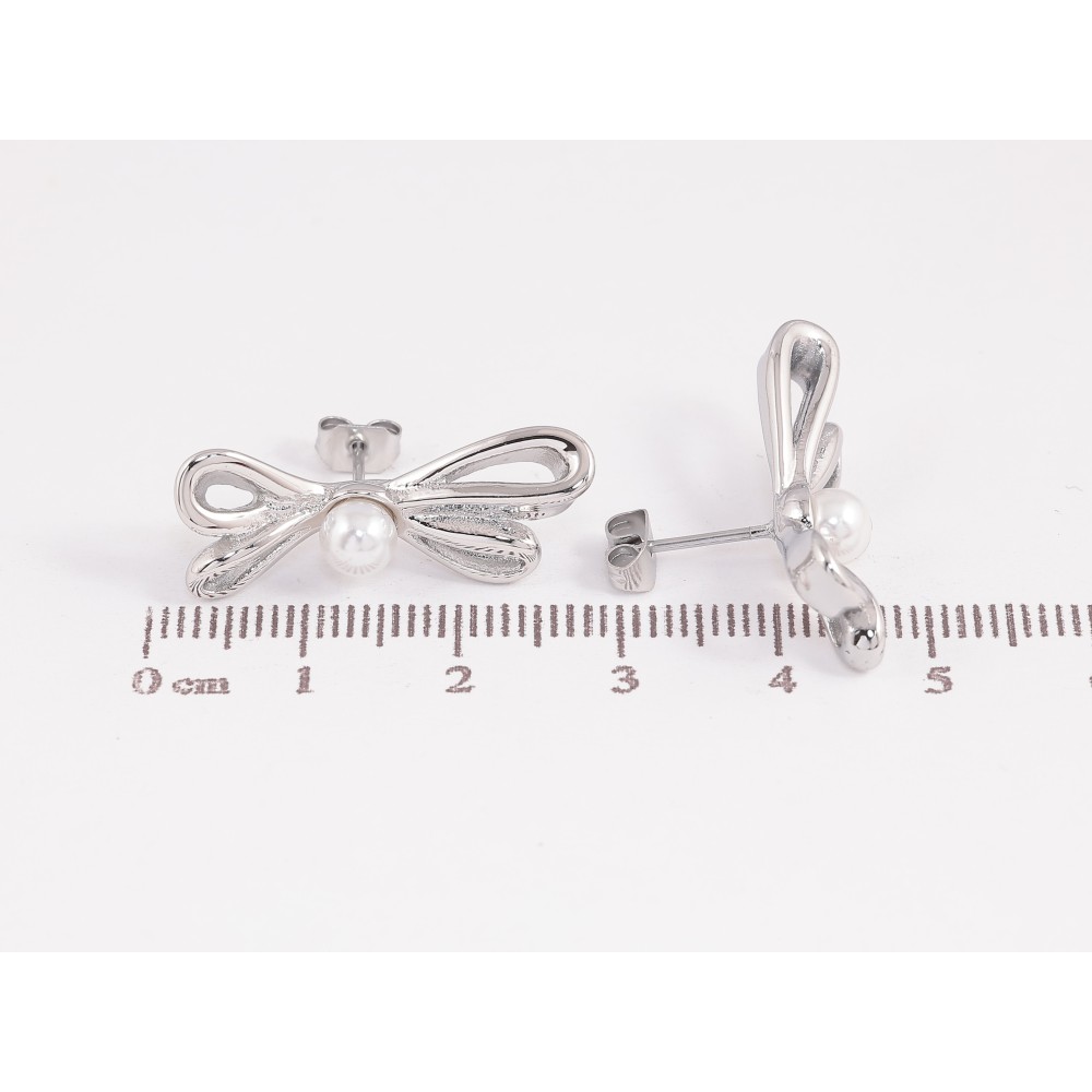 Сережки Нержавіюча сталь пусети "Банти з перлинами"