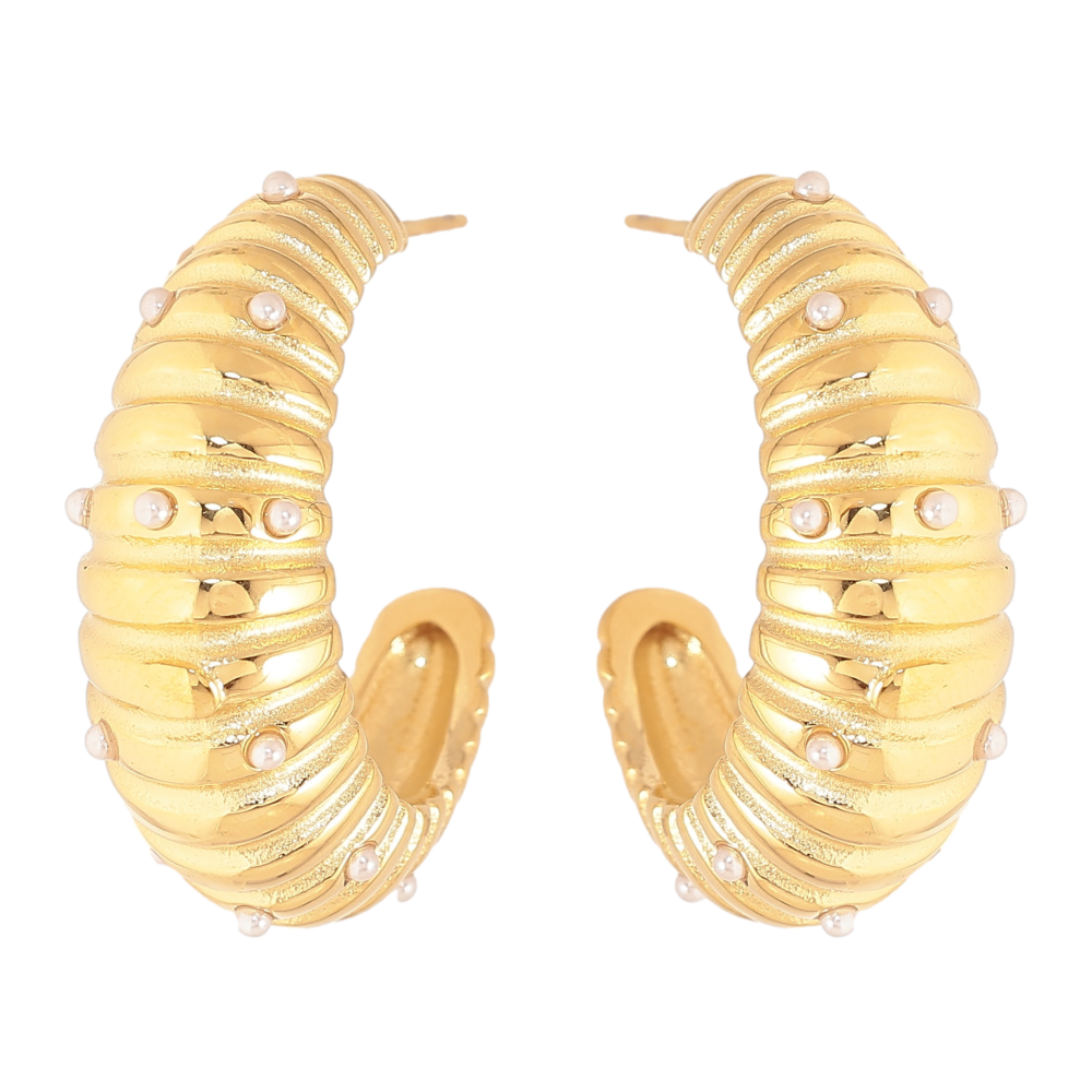 Сережки Нержавіюча сталь пусети "Декоративні дуги з перлинними вставками"