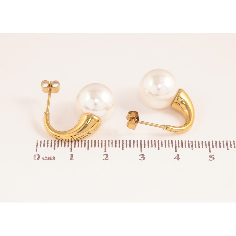 Сережки Нержавіюча сталь пусети "Дуги з перлинами" ø 12мм