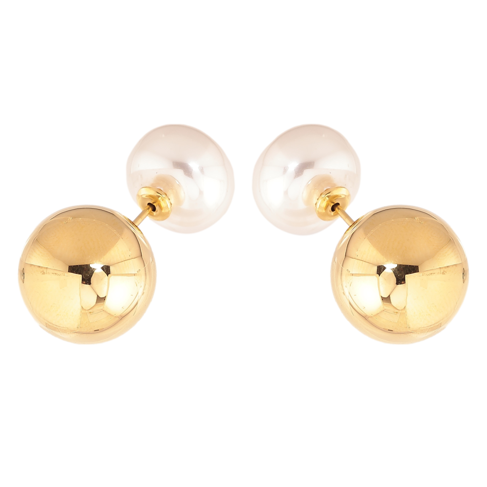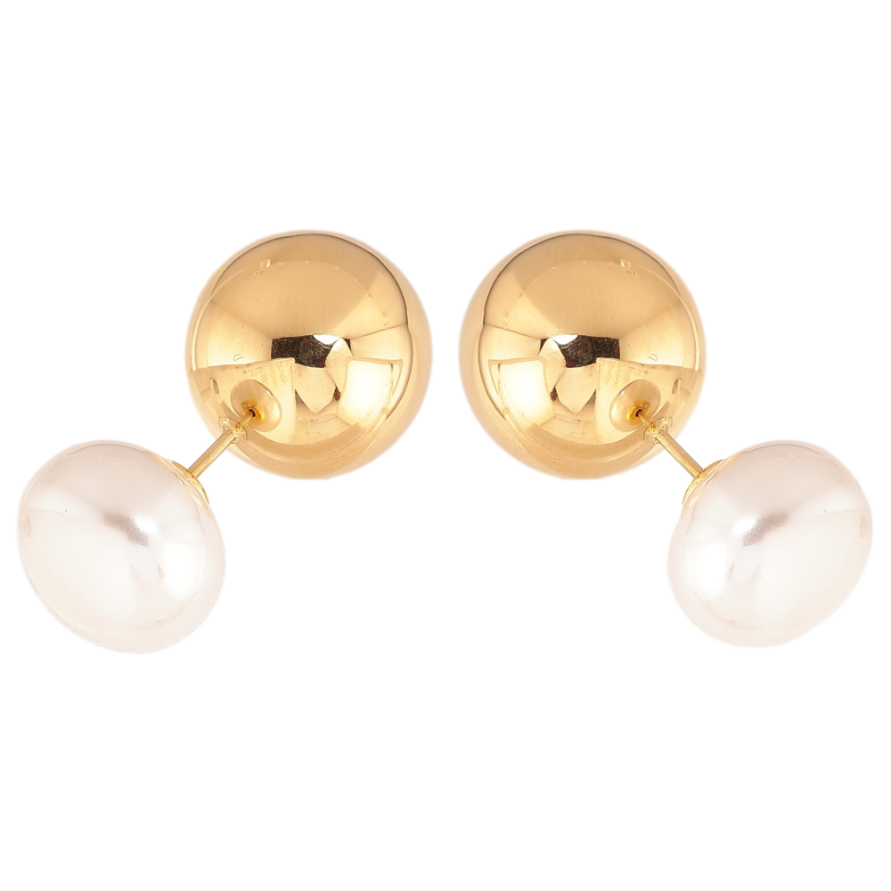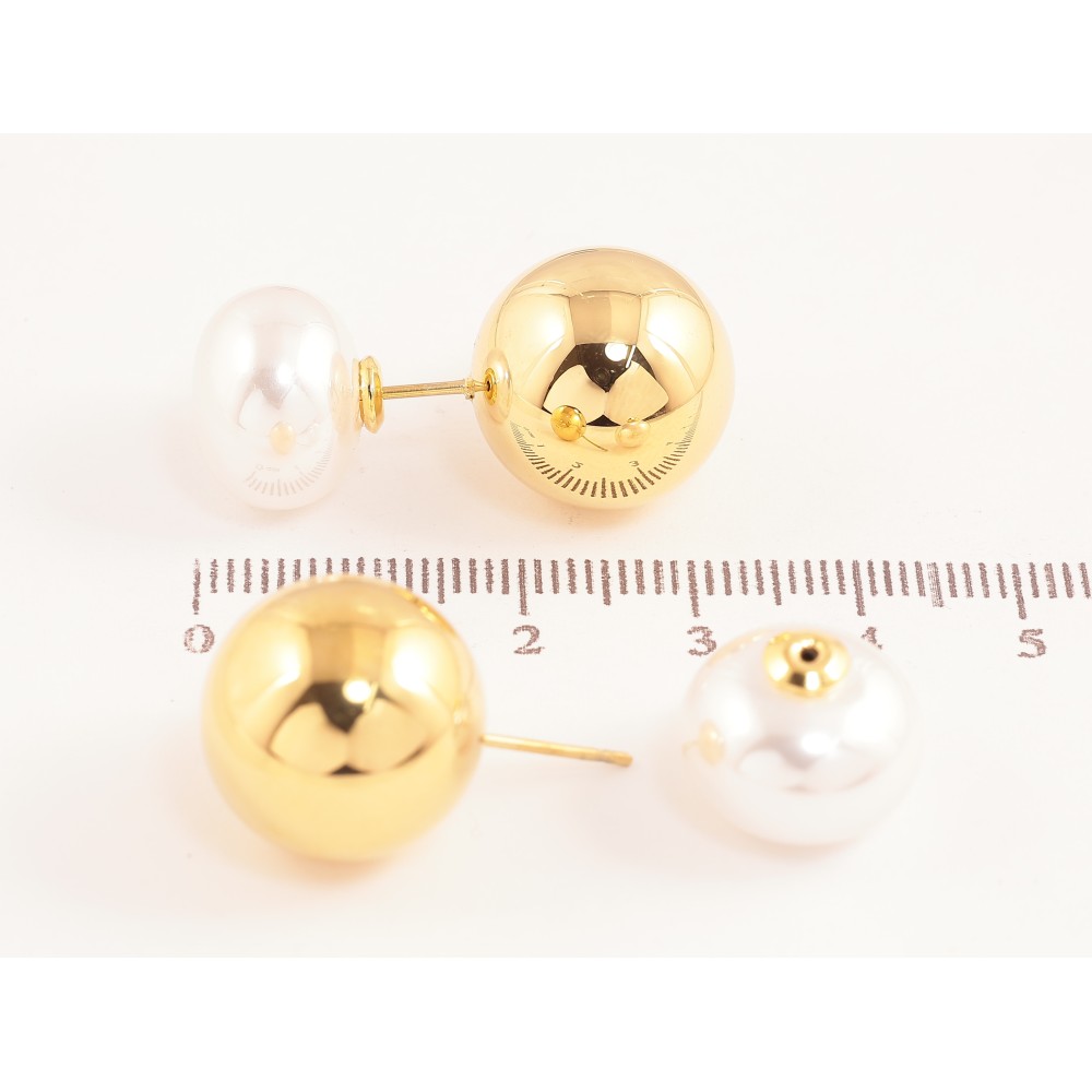 Сережки Нержавіюча сталь пусети-джекети "Куля з перлиною" ø 14мм та 16мм