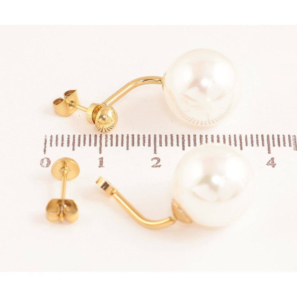 Сережки Нержавіюча сталь пусети-джекети "Перлини" ø 5мм та 14мм, 2 в 1