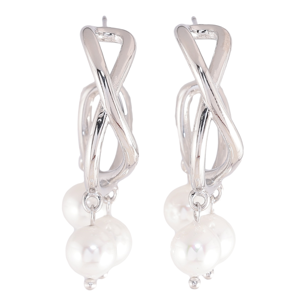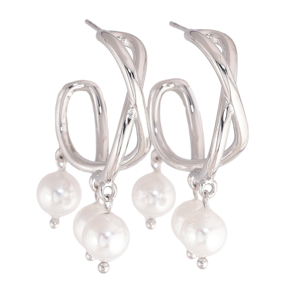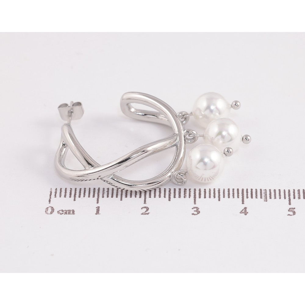 Сережки Нержавіюча сталь пусети "Кільця з перлинними підвісками" на один бік