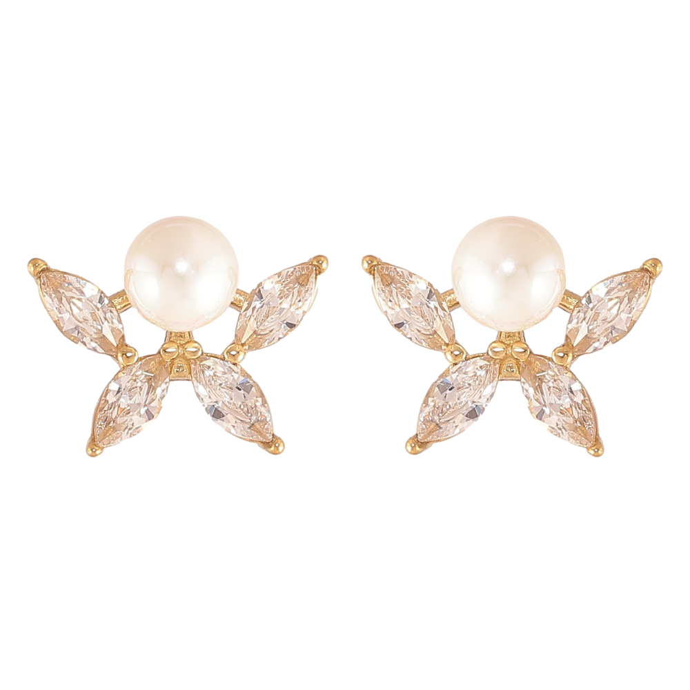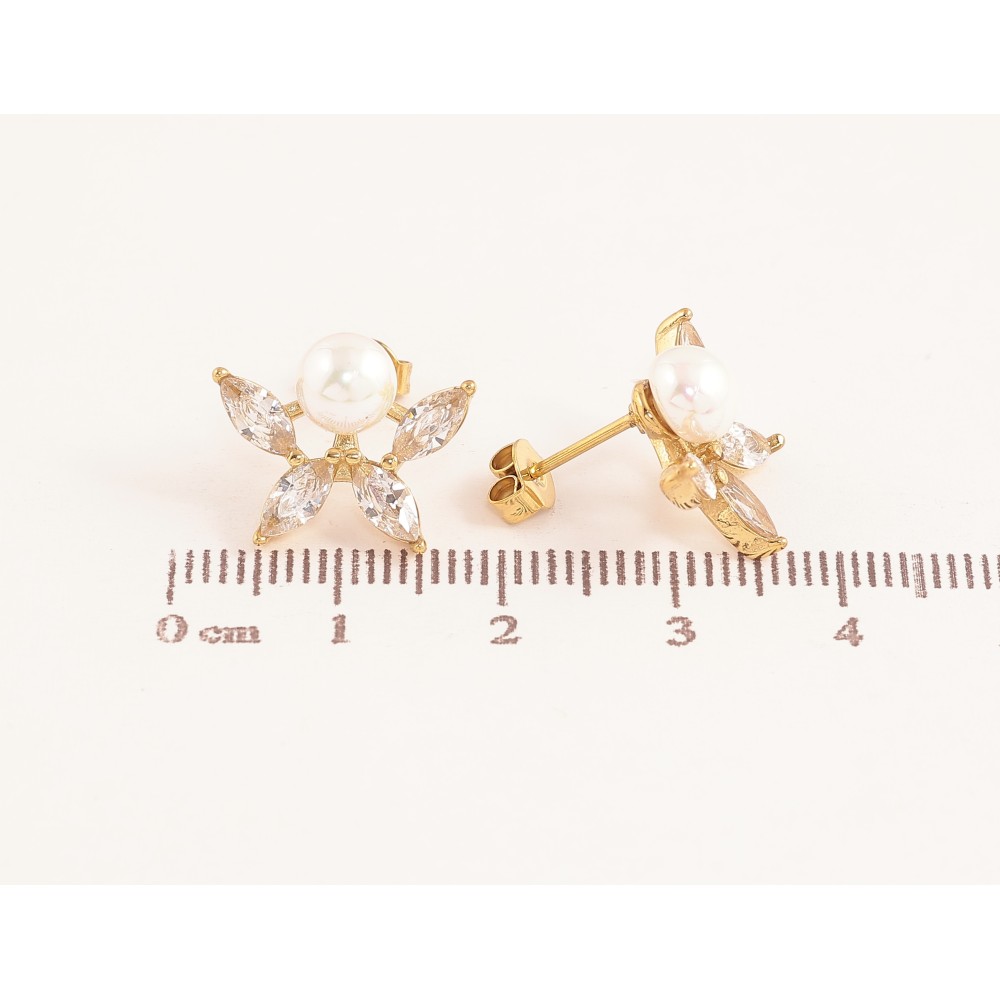 Сережки Нержавіюча сталь пусети "Кристальні квіточки з перлинами"