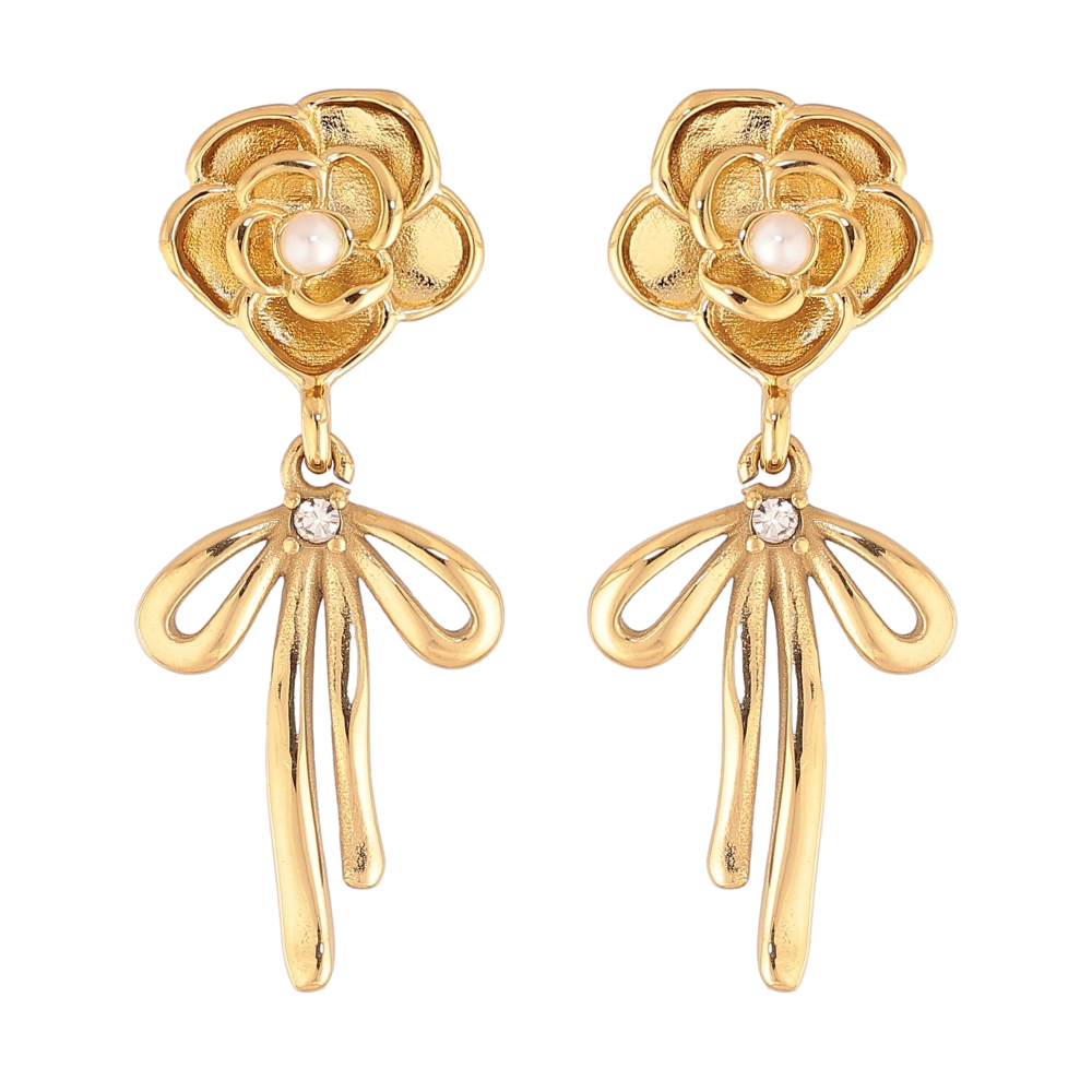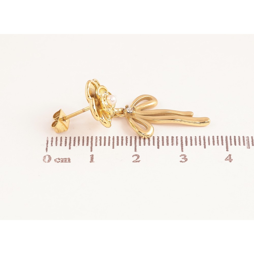 Сережки Нержавіюча сталь пусети "Квіточки з бантами"