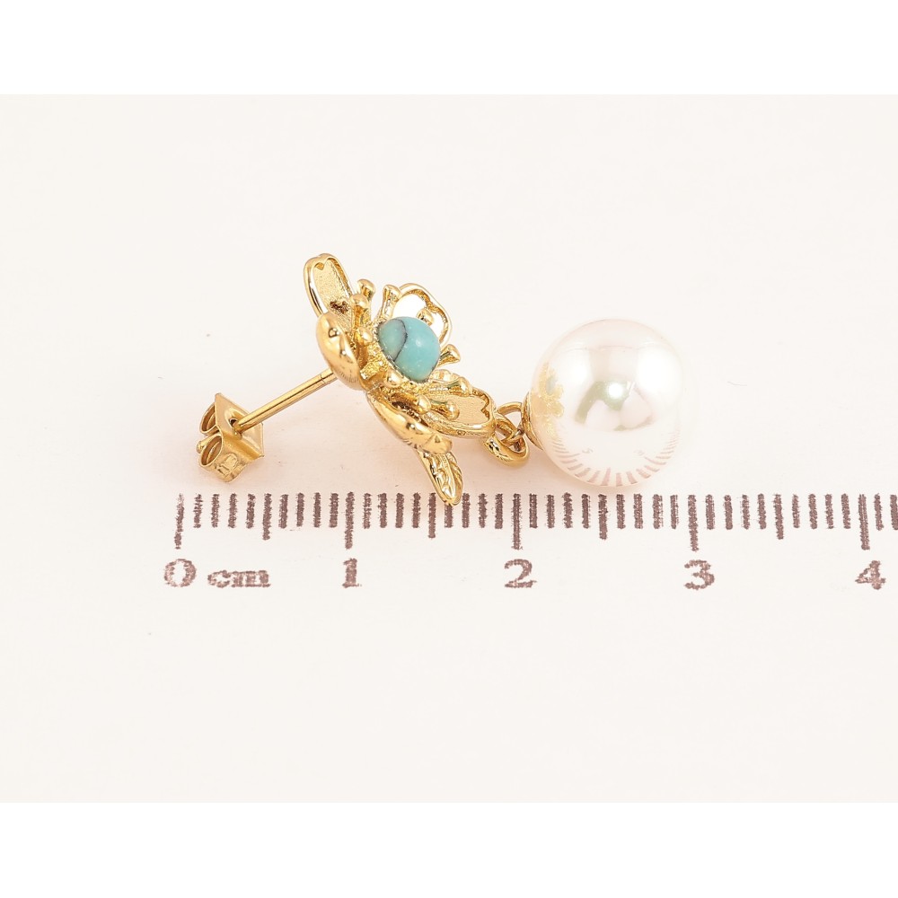Сережки Нержавіюча сталь пусети "Квіточки з блакитними кристалами та перлинами"