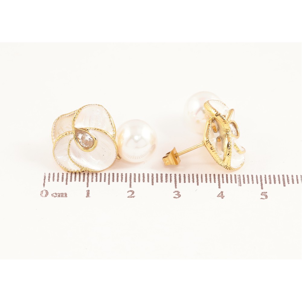 Сережки Нержавіюча сталь пусети "Квіточки з перлинами"