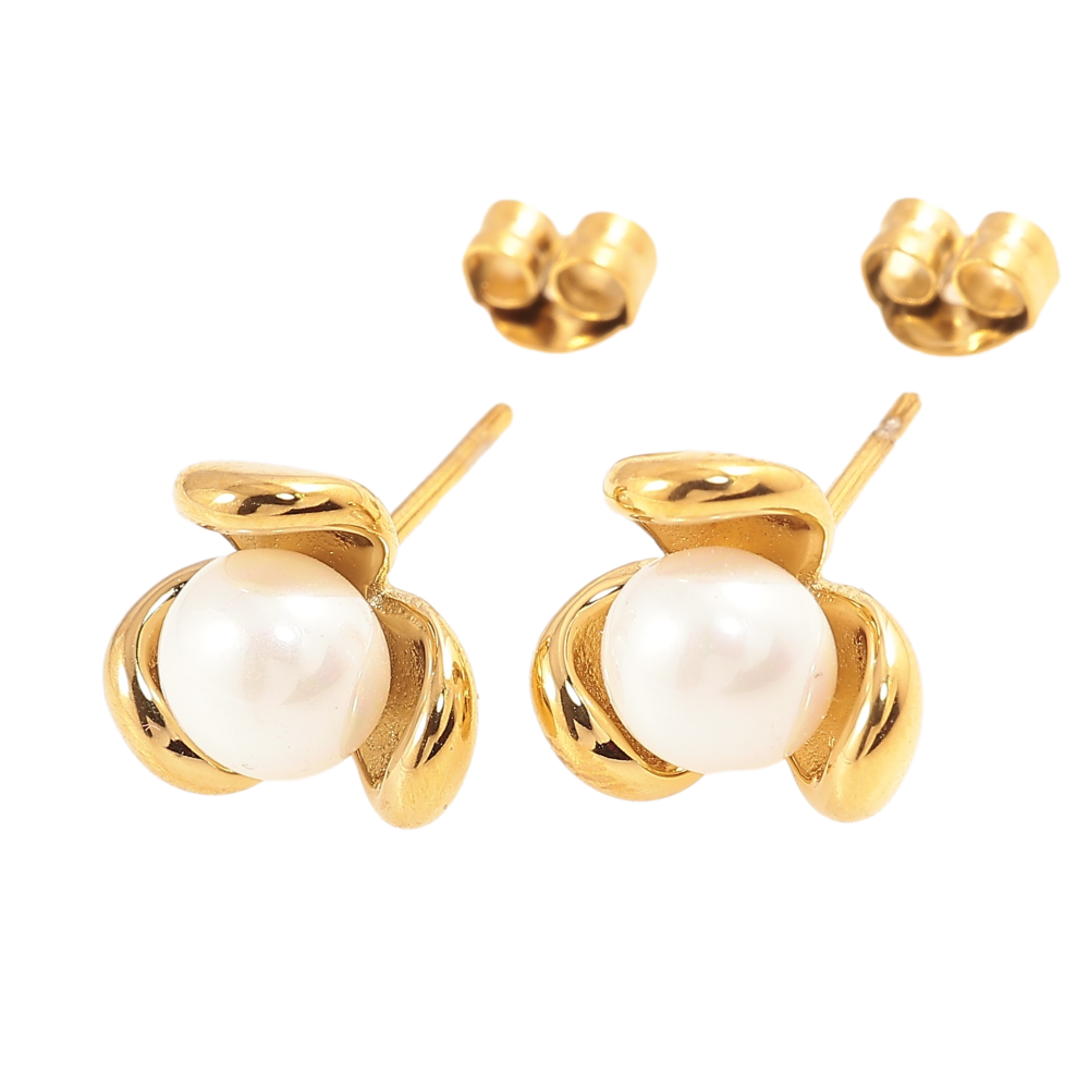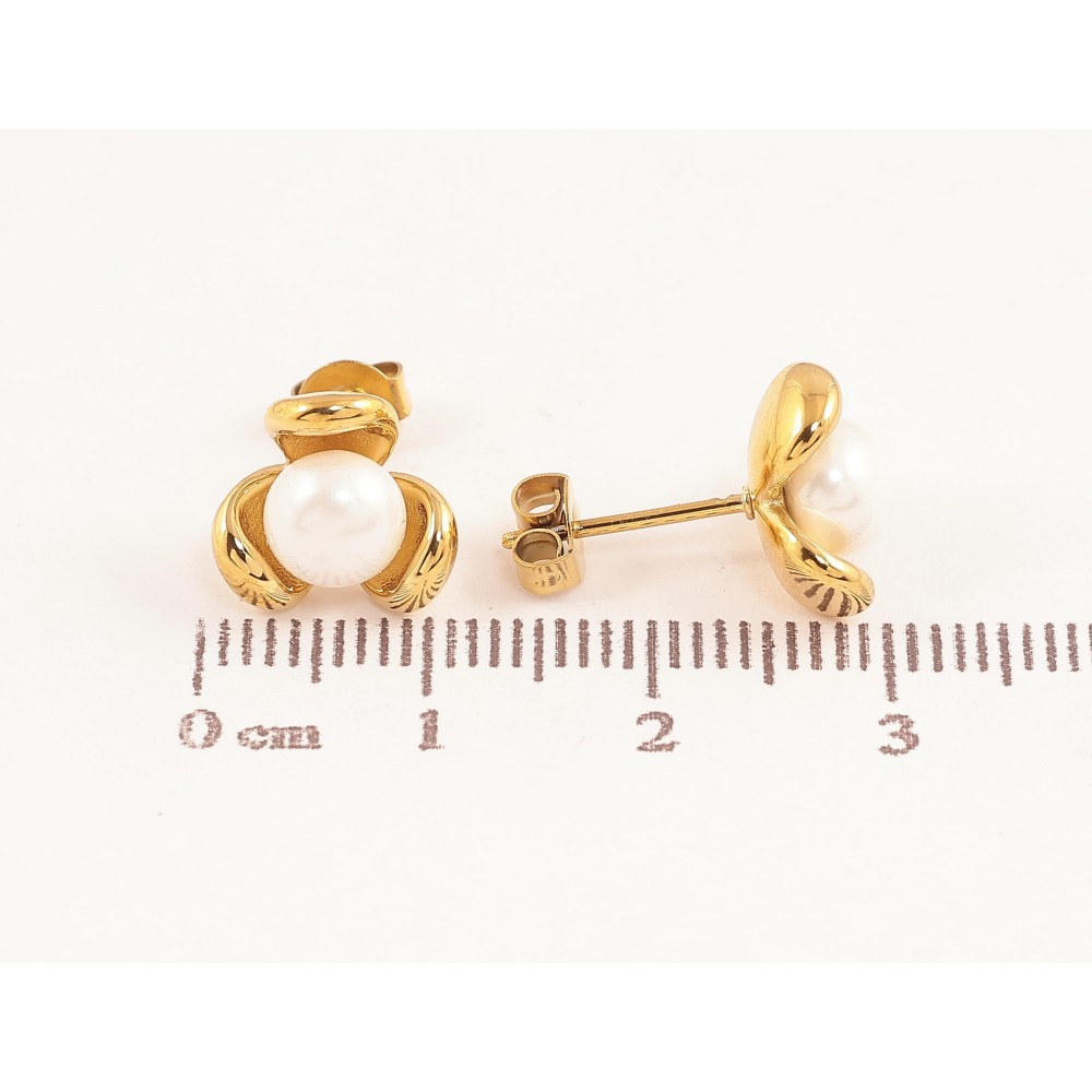Сережки Нержавіюча сталь пусети "Квіточки з перлинами"
