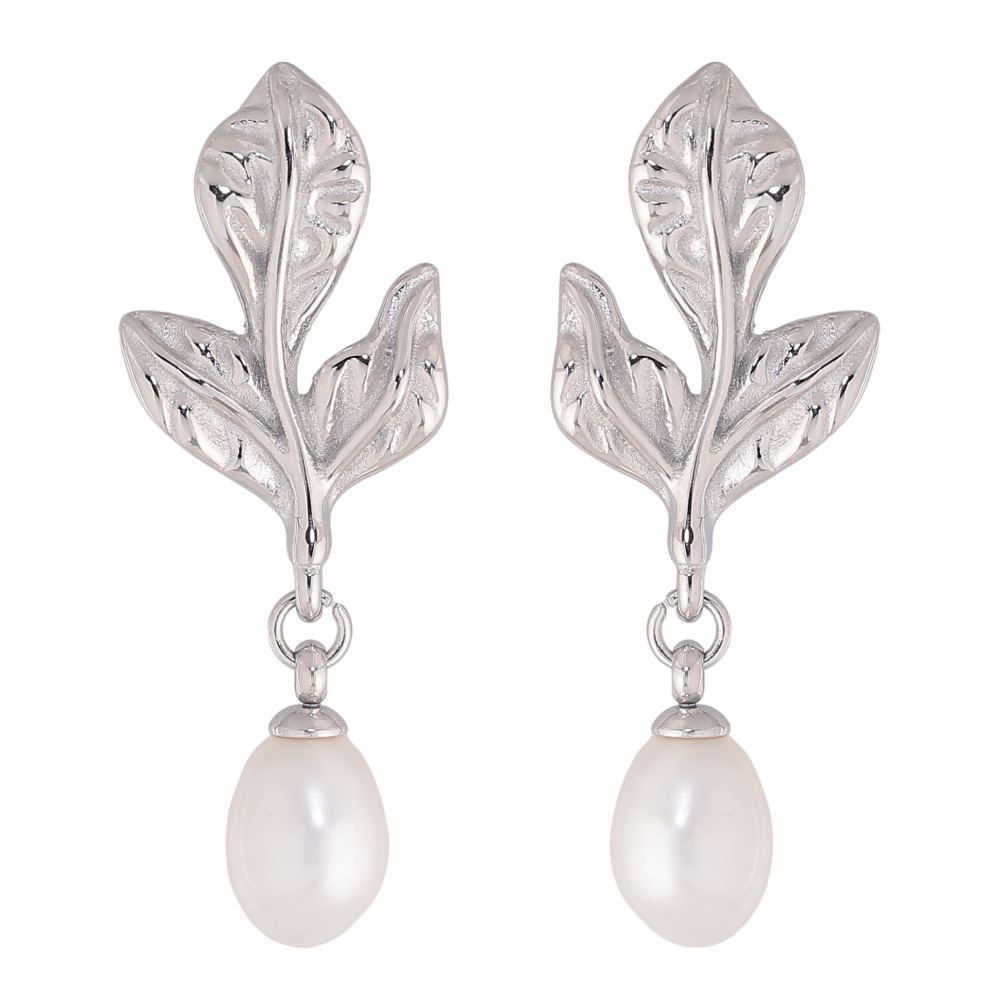 Сережки Нержавіюча сталь пусети "Листочки з перлинами"