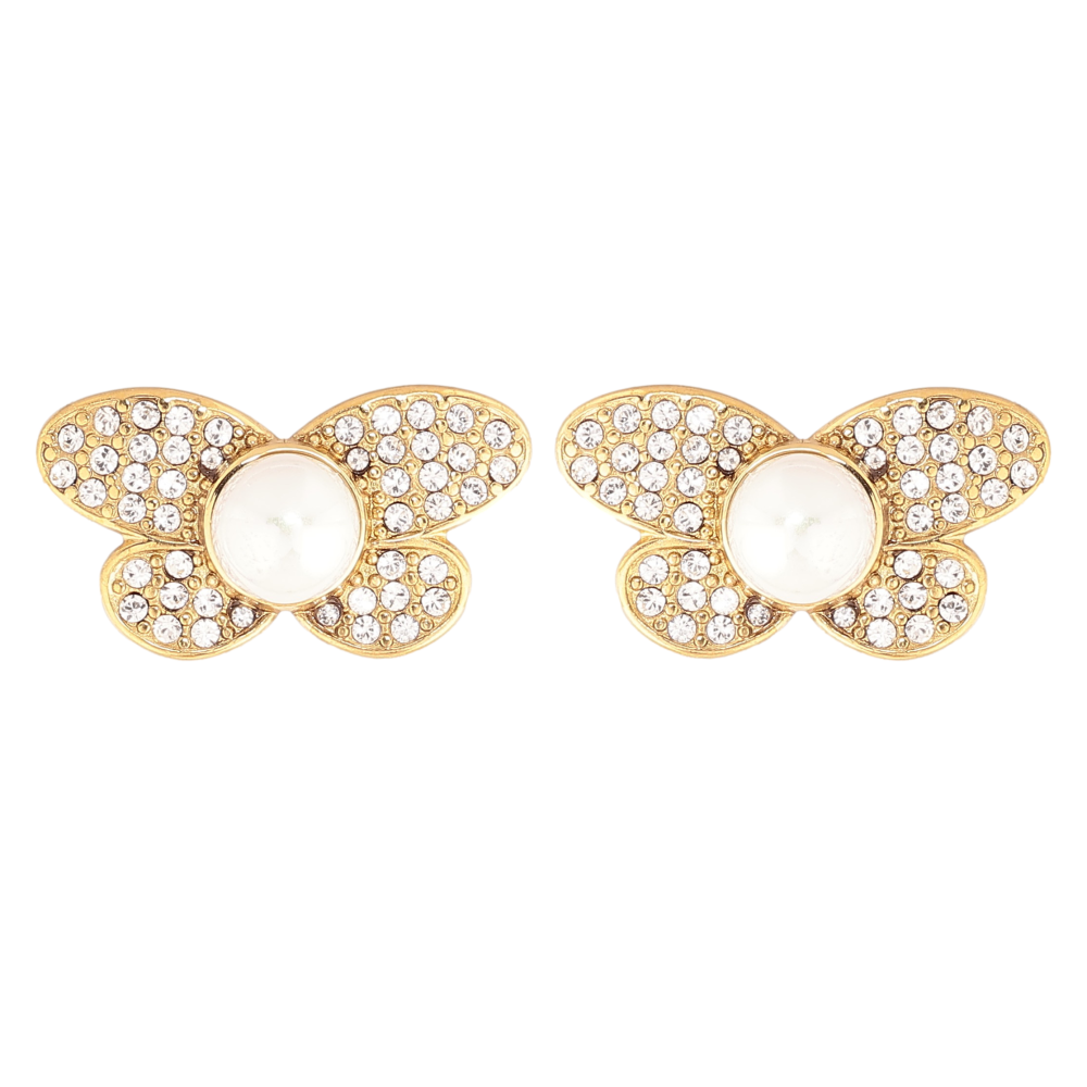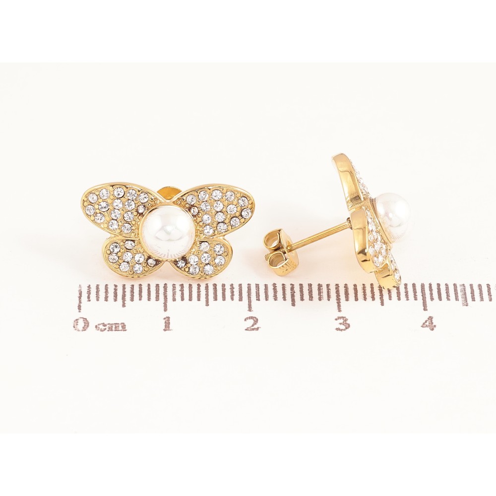 Сережки Нержавіюча сталь пусети "Метелики з кристалами та перлинами"