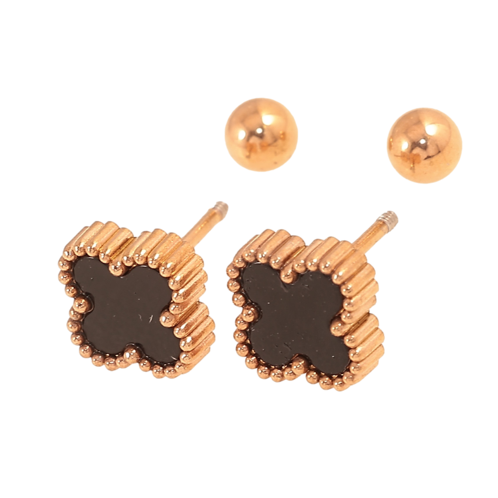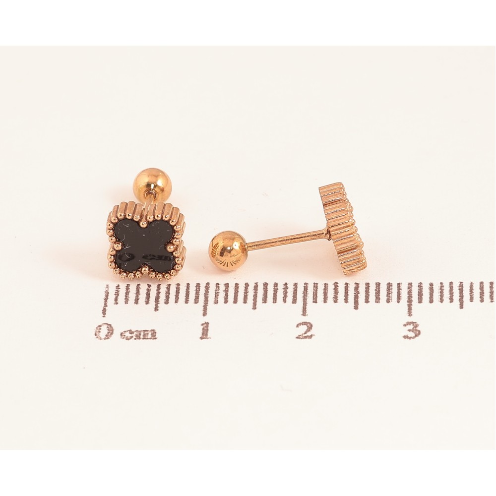 Сережки Нержавіюча сталь пусети на закрутках "Конюшина з чорними вставками" 8х8мм