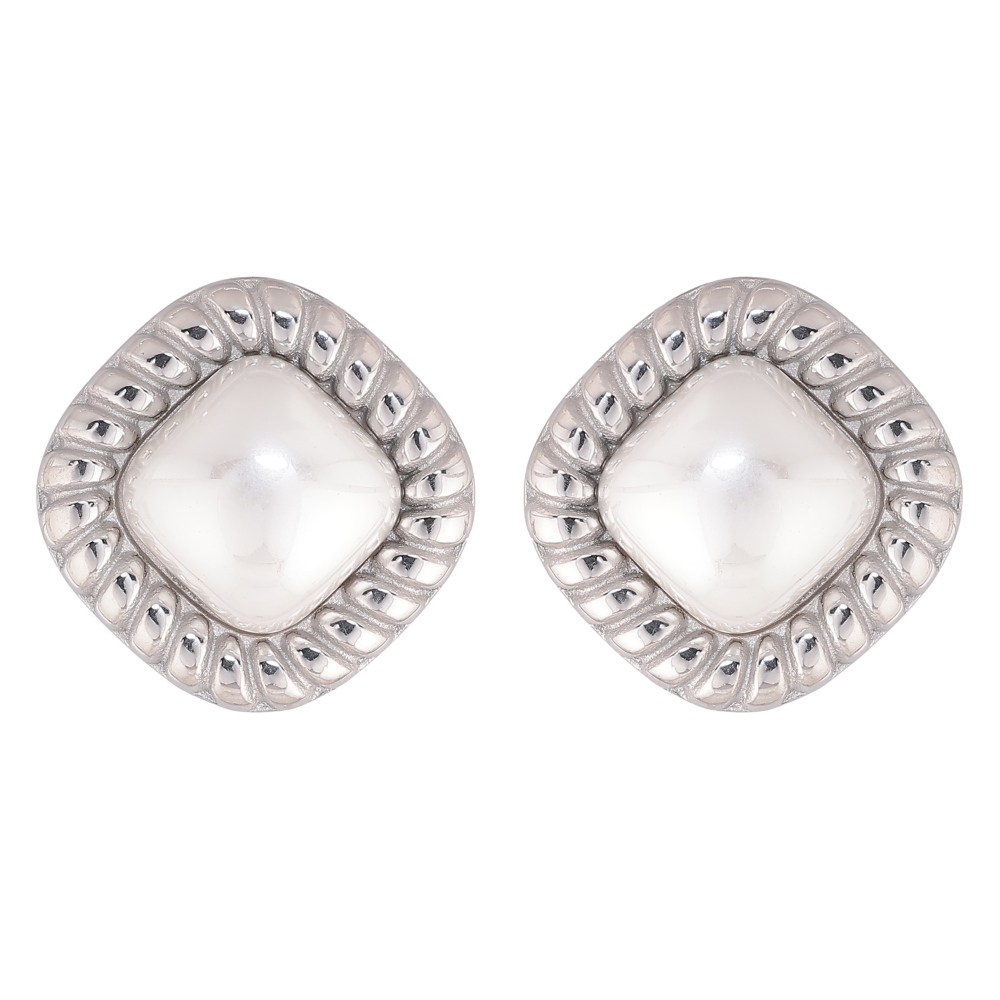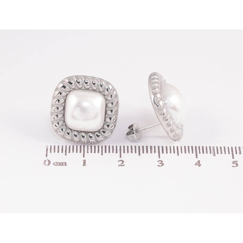 Сережки Нержавіюча сталь пусети "Ромби з перлинними вставками"