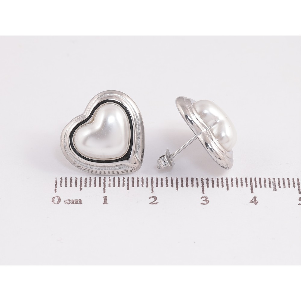 Сережки Нержавіюча сталь пусети "Сердечка з перлинними вставками"