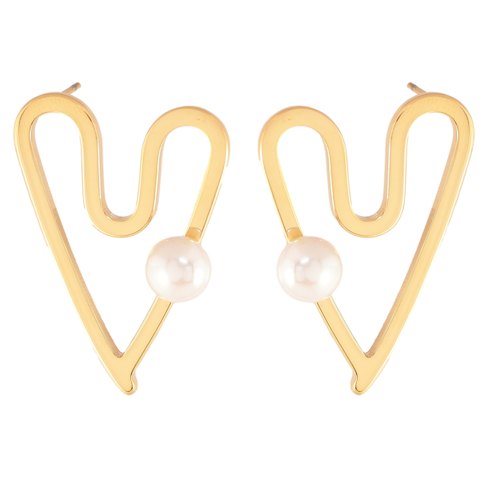 Сережки Нержавіюча сталь пусети "Сердечки з перлинами"