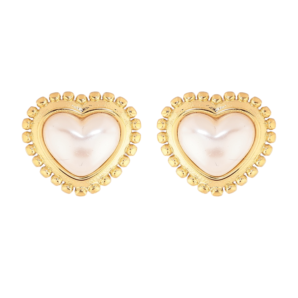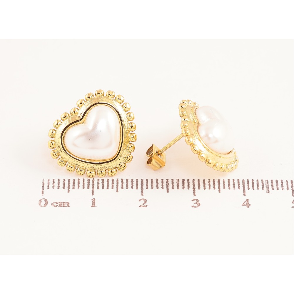 Сережки Нержавіюча сталь пусети "Сердечки з перлинами"