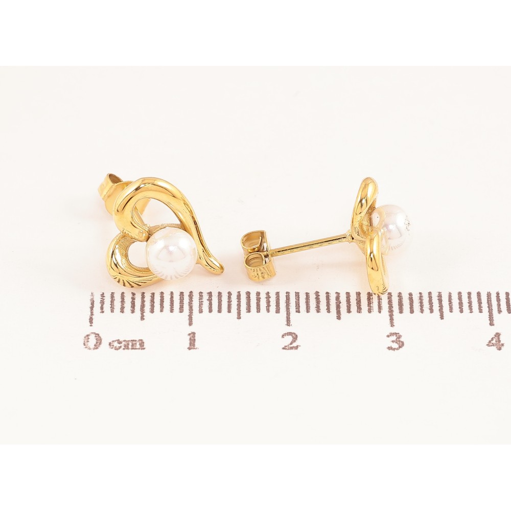 Сережки Нержавіюча сталь пусети "Сердечки з перлинами"