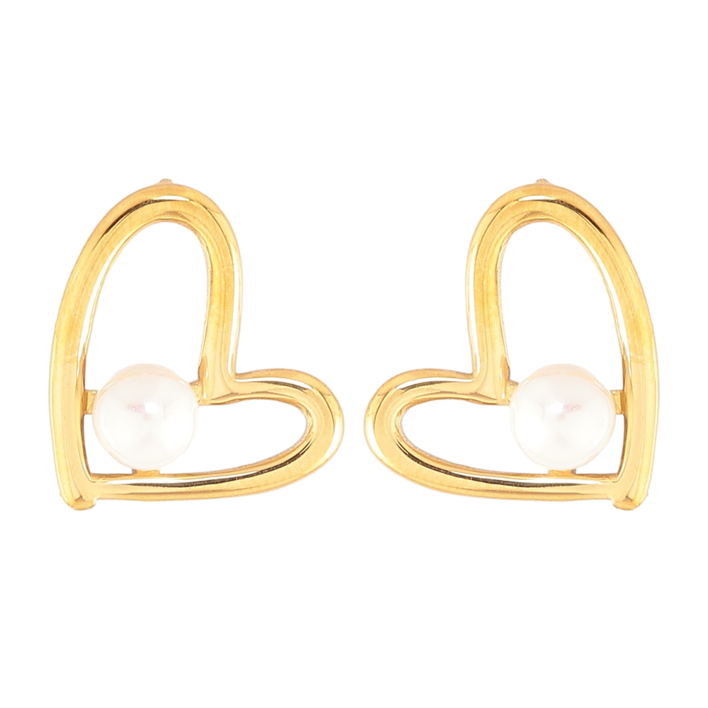 Сережки Нержавіюча сталь пусети "Сердечки з перлинами"