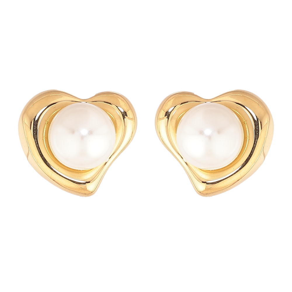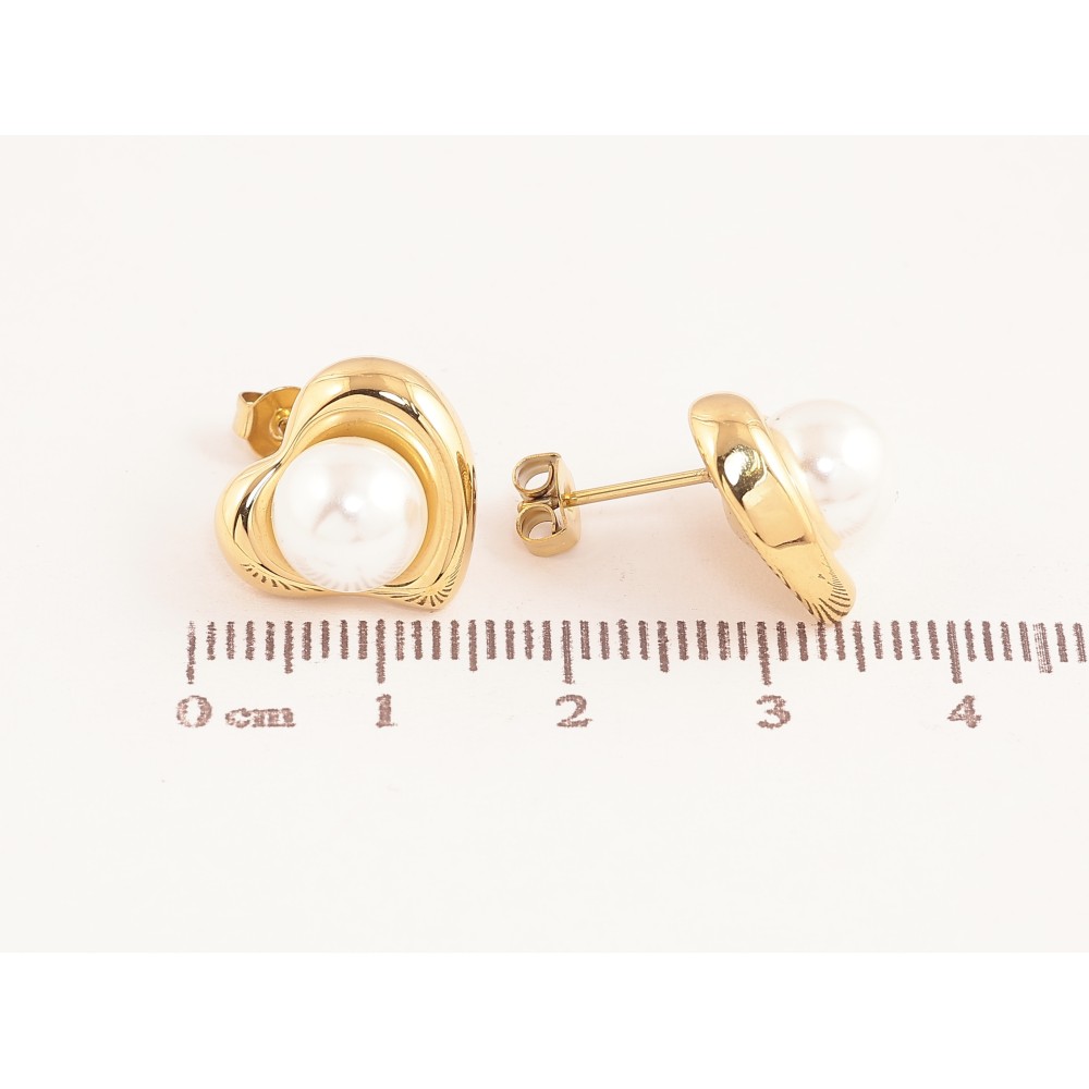 Сережки Нержавіюча сталь пусети "Сердечки з перлинами"