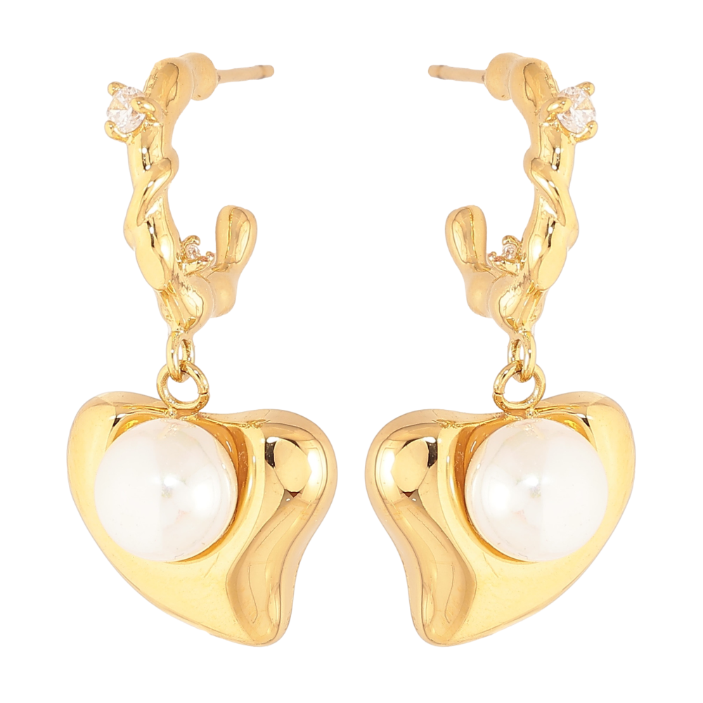 Сережки Нержавіюча сталь пусети "Сердечки з перлинами"
