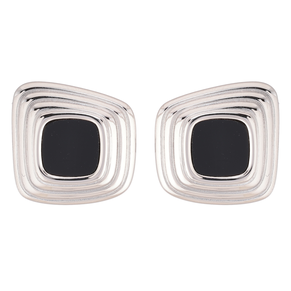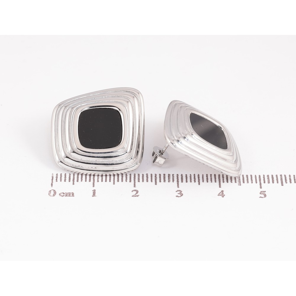 Сережки Нержавіюча сталь пусети "Візерунок з чорними вставками"