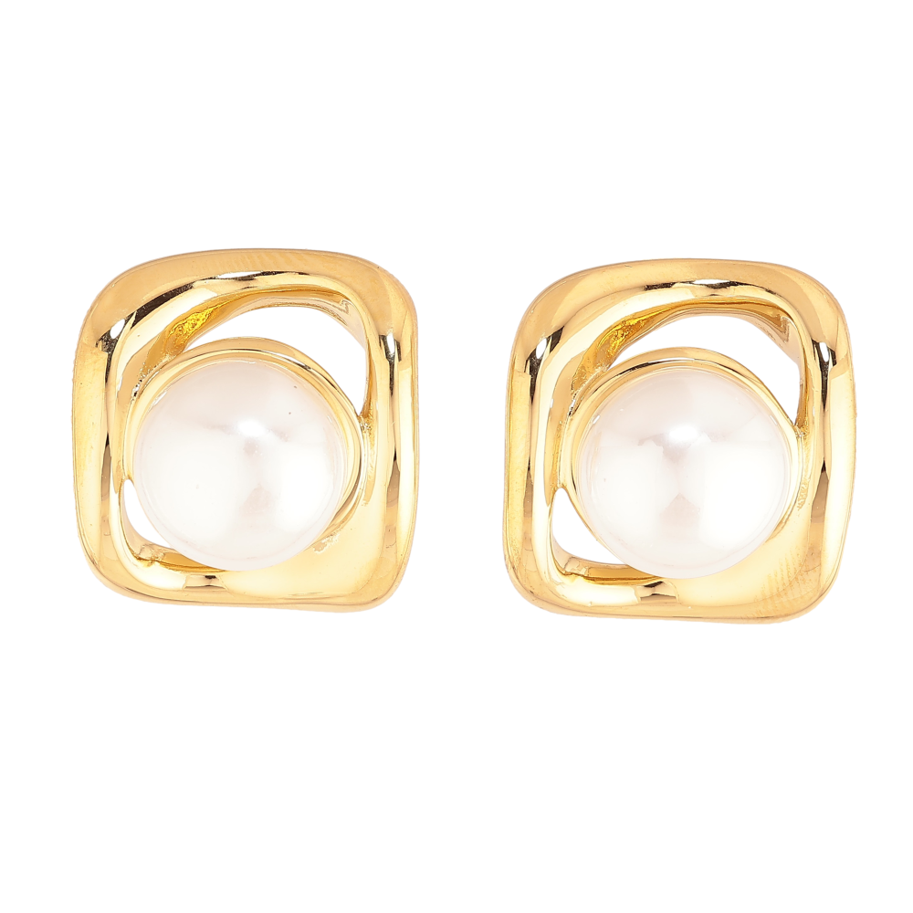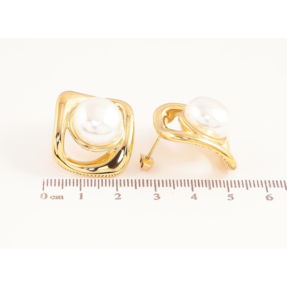 Сережки Нержавіюча сталь пусети "Візерунок з перлинами"