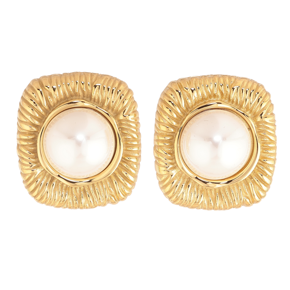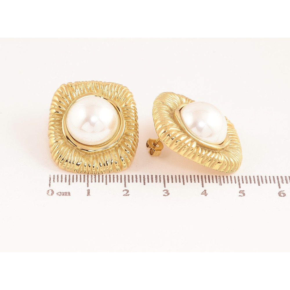 Сережки Нержавіюча сталь пусети "Візерунок з перлинами"