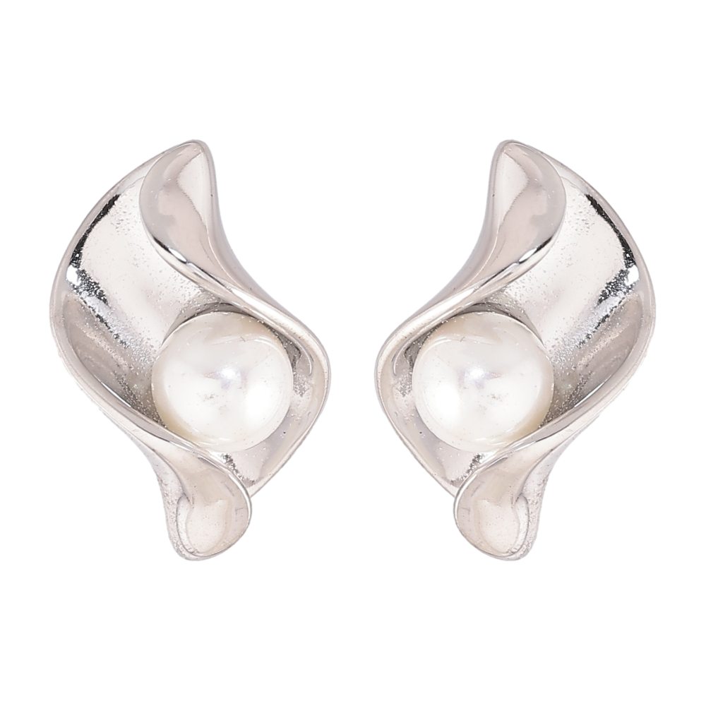 Сережки Нержавіюча сталь пусети "Візерунок з перлинами"