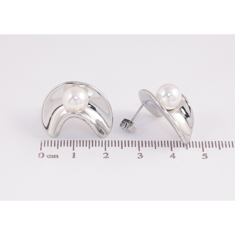 Сережки Нержавіюча сталь пусети "Візерунок з перлинами"