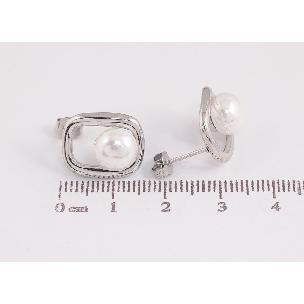 Сережки Нержавіюча сталь пусети "Візерунок з перлинами" фото №2