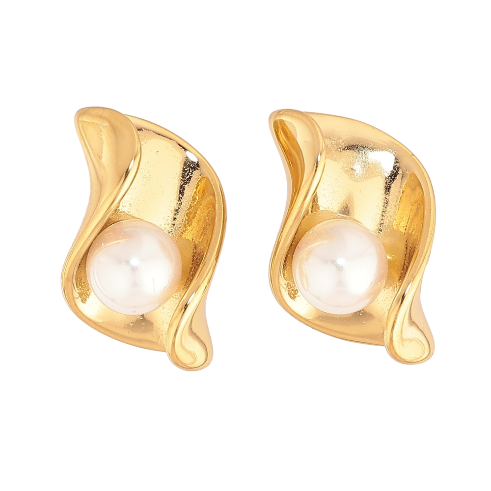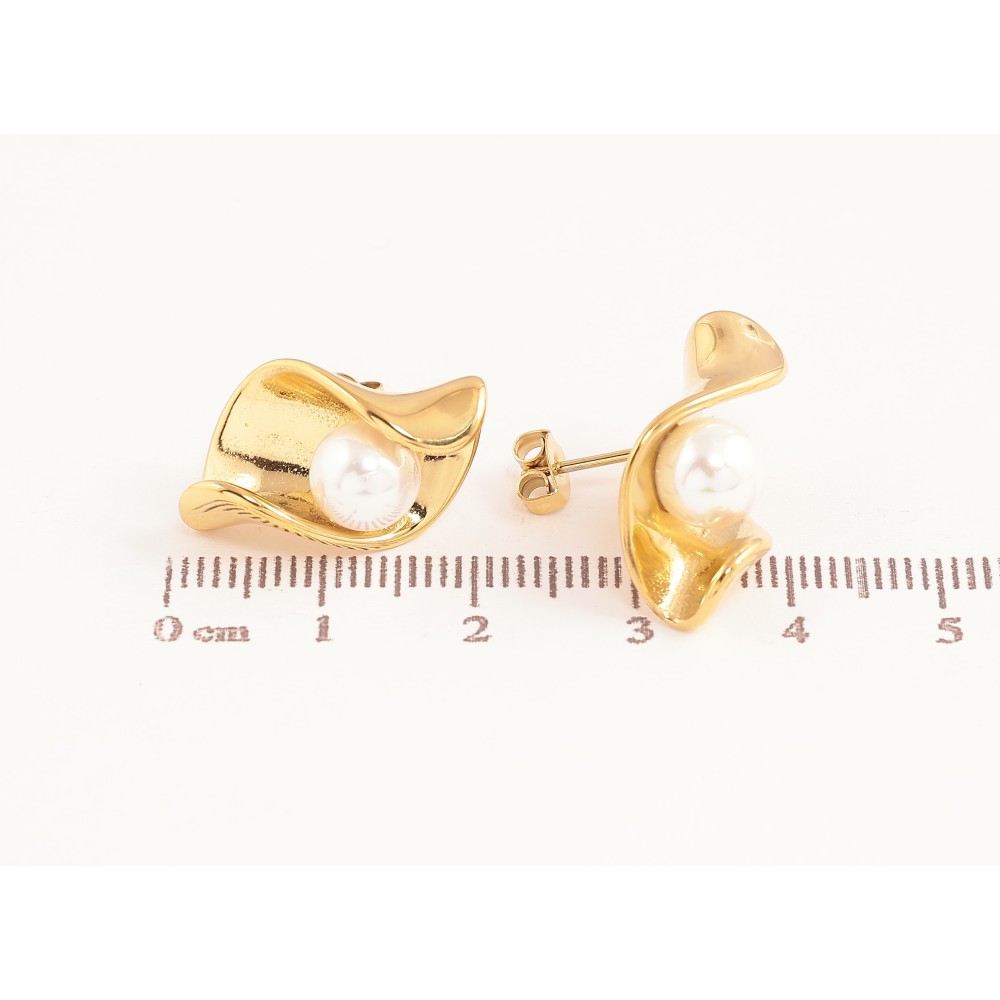 Сережки Нержавіюча сталь пусети "Візерунок з перлинами" на один бік