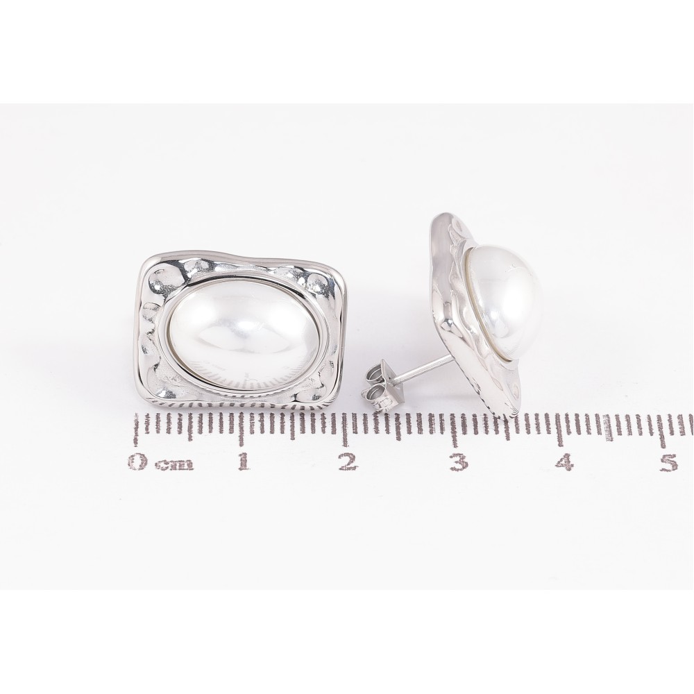 Сережки Нержавіюча сталь пусети "Візерунок з перлинними вставками"