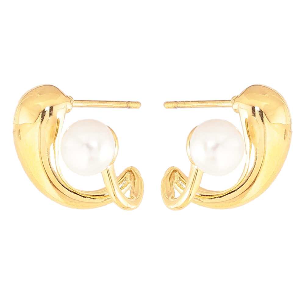 Сережки Нержавіюча сталь пусети "Візерунок з перлиною"