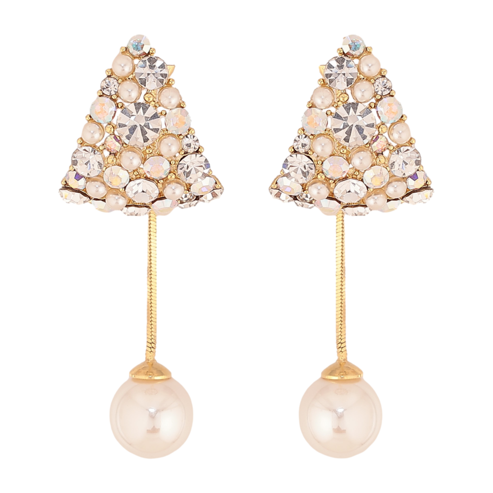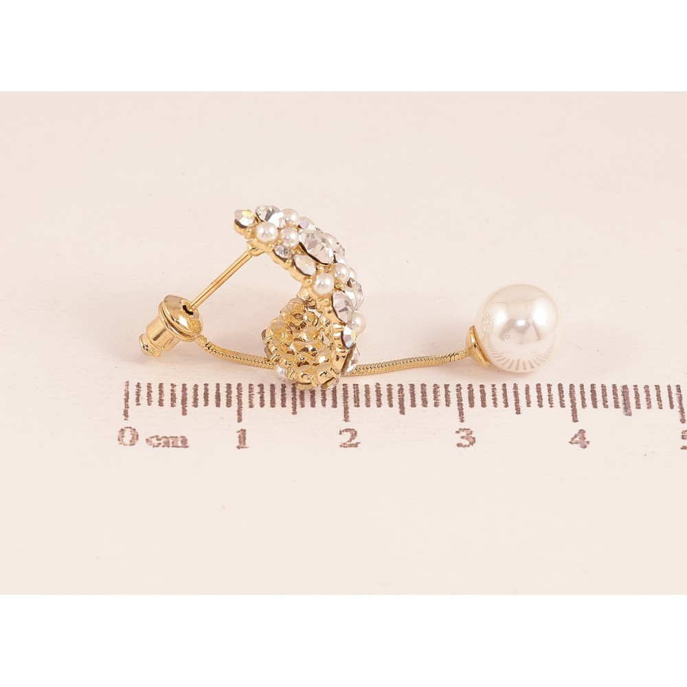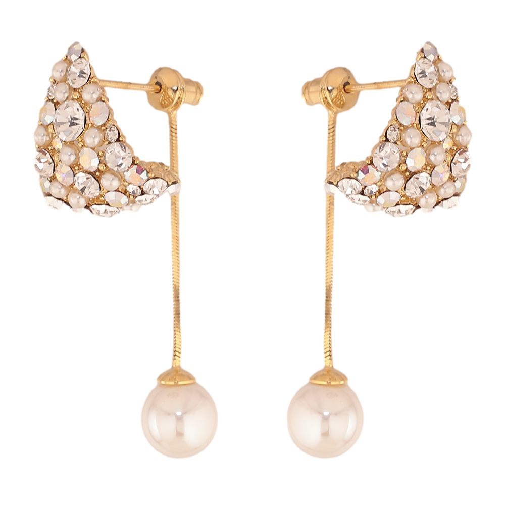 Сережки Xuping колір 14K з кристалами Swarovski пусети "Авангард з кристалами АВ та перлинами ø 8мм"