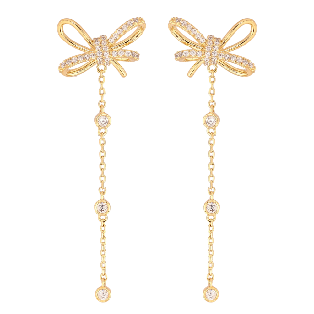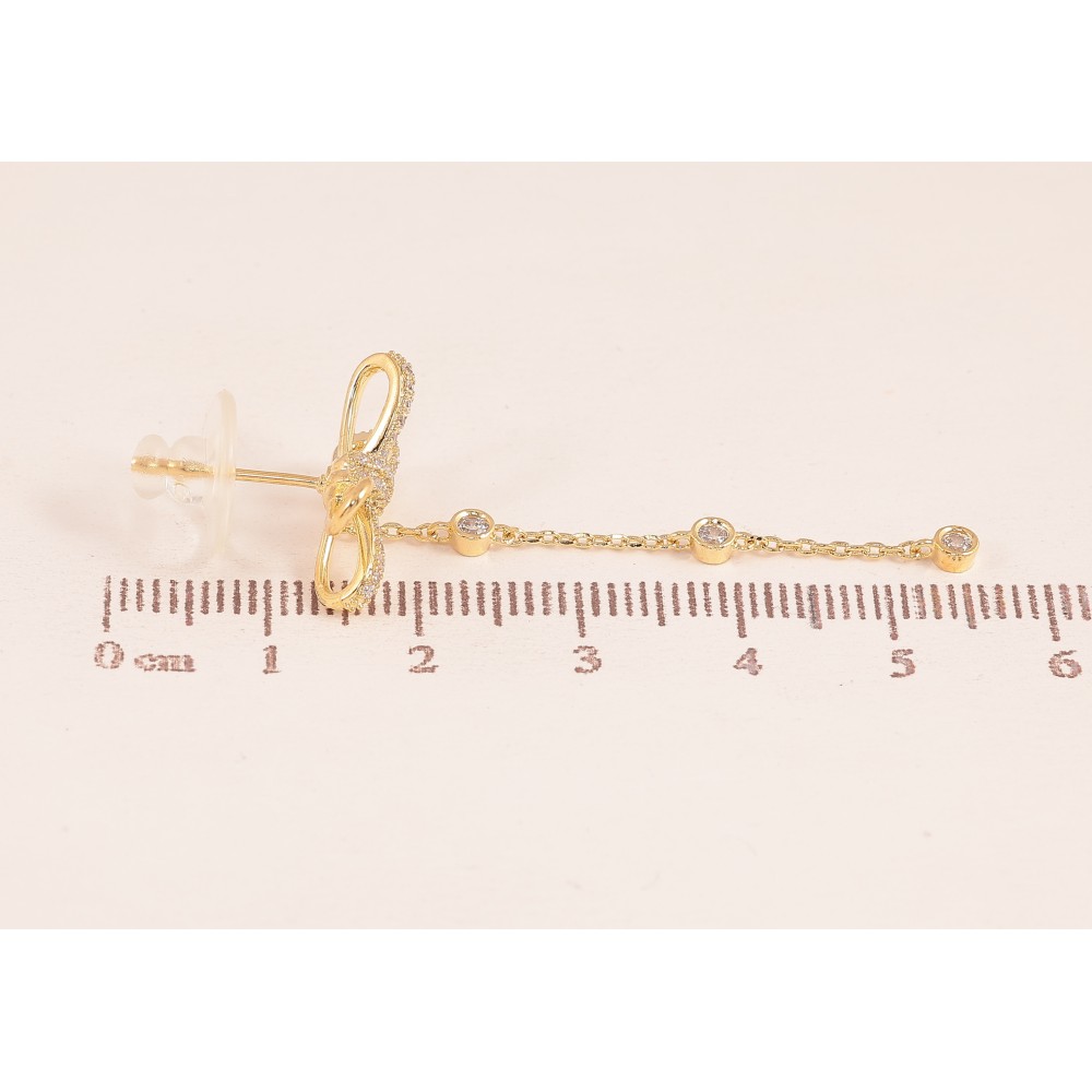 Сережки Xuping колір 14K з кристалами Swarovski пусети "Бантики з кристальними підвісками"