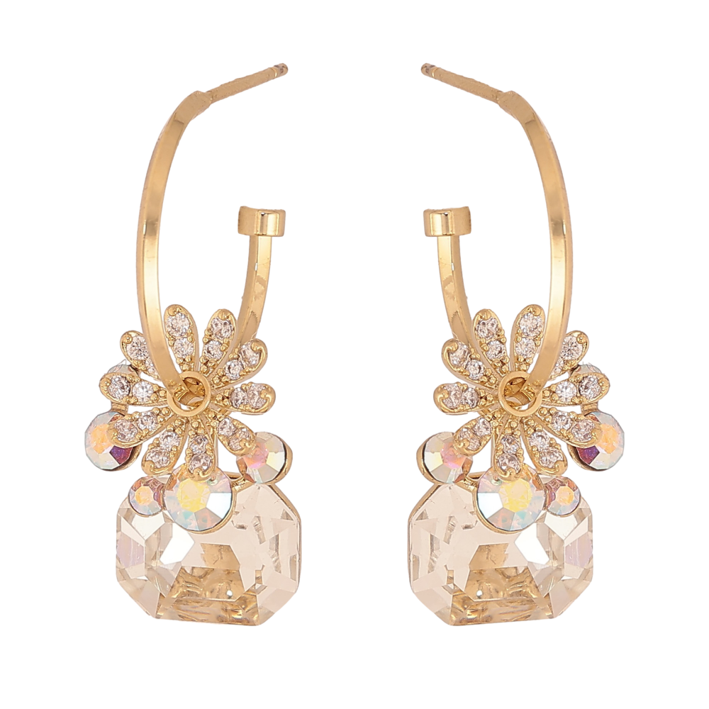 Сережки Xuping колір 14K з кристалами Swarovski пусети "Квіткові мотиви з кристалами АВ та Clear"
