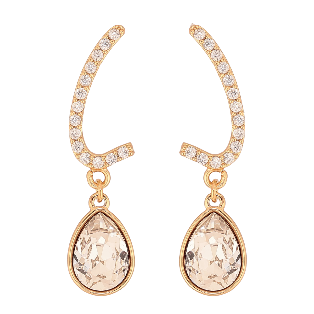 Сережки Xuping колір 18K з кристалами Swarovski пусети "Дуги з кристальними крапельками Clear"