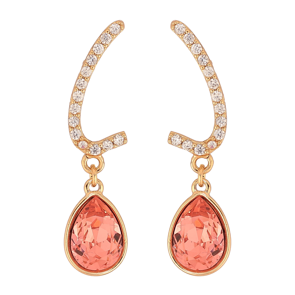 Сережки Xuping колір 18K з кристалами Swarovski пусети "Дуги з кристальними крапельками Padparadscha"