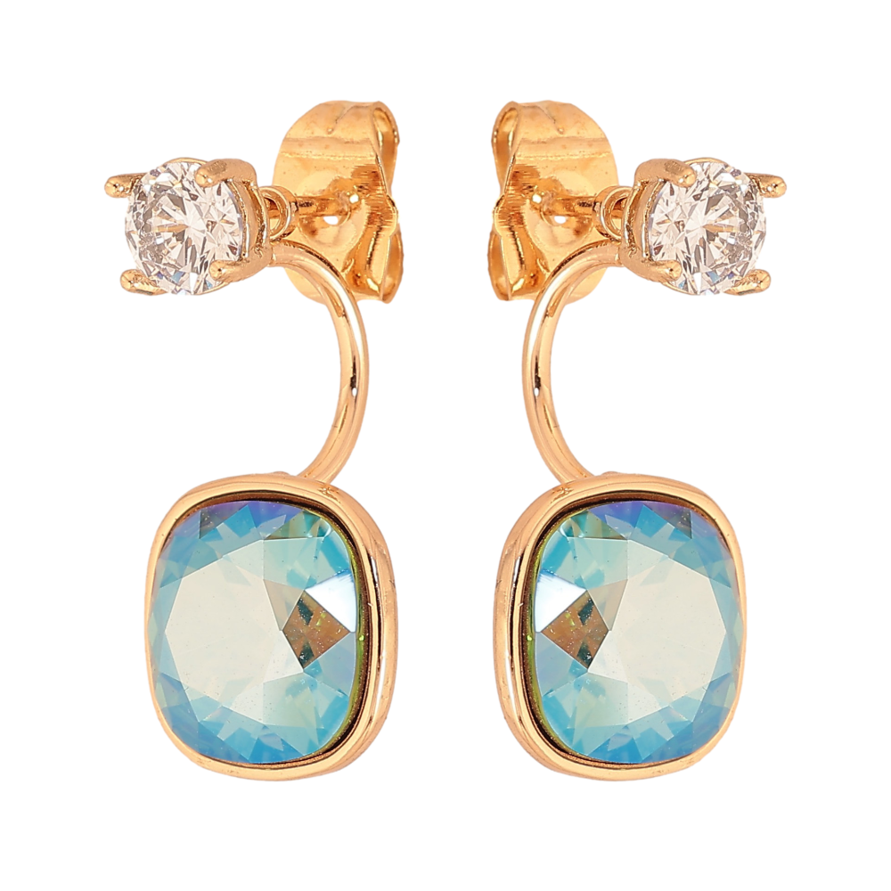 Сережки Xuping колір 18K з кристалами Swarovski пусети-джекети "Кр-ли Erinite АВ з кристалами ø 5мм"