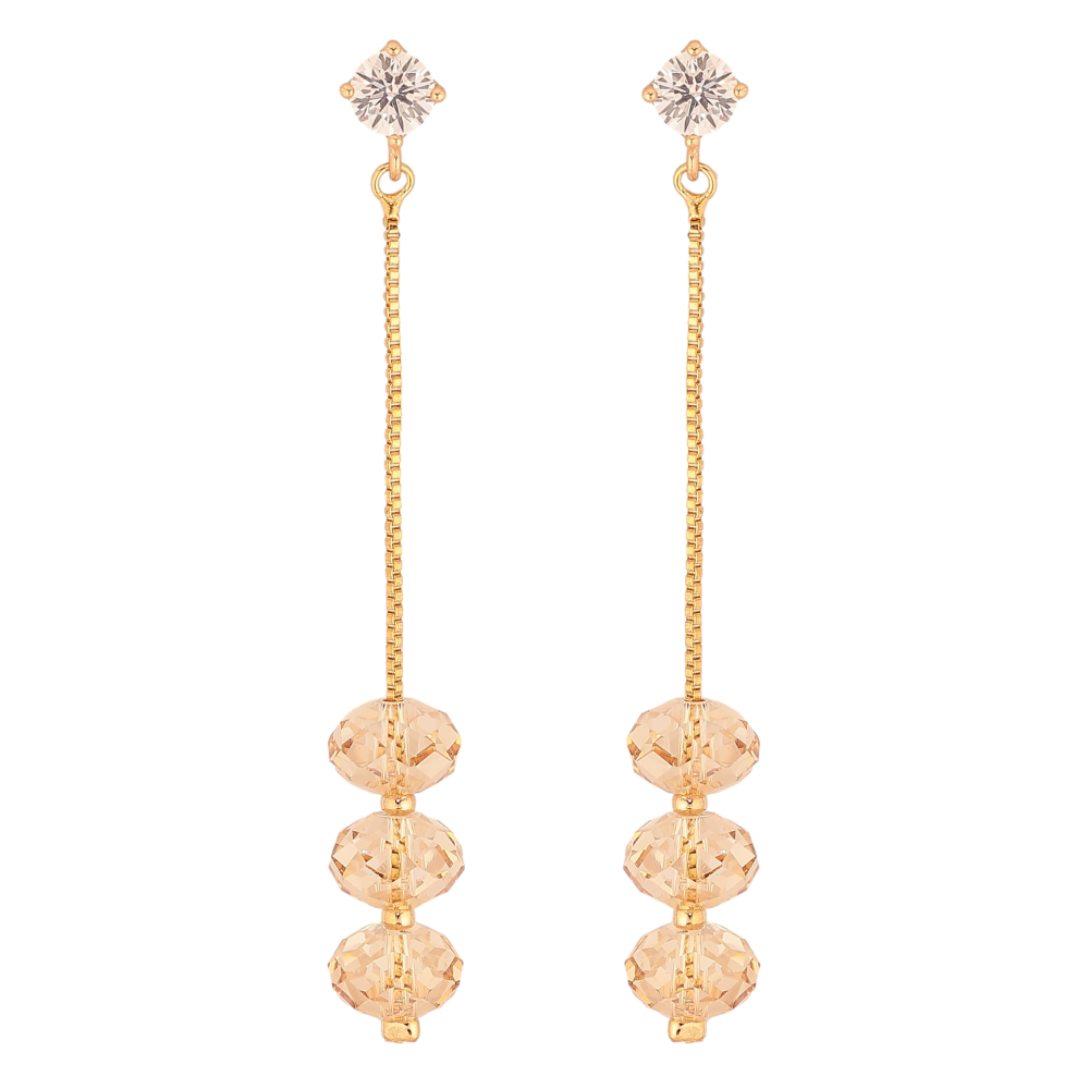 Сережки Xuping колір 18K з кристалами Swarovski пусети "Кристальні намистини Golden Shadow на ланцюжках"