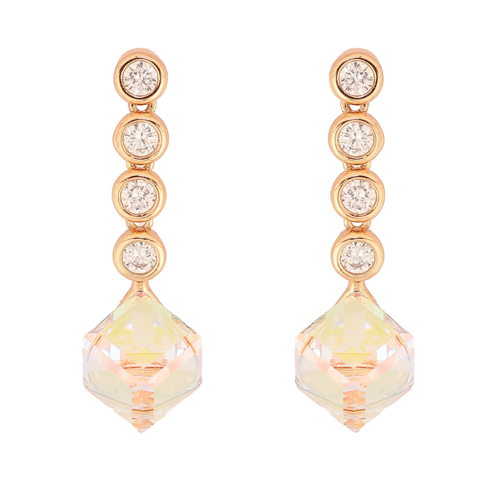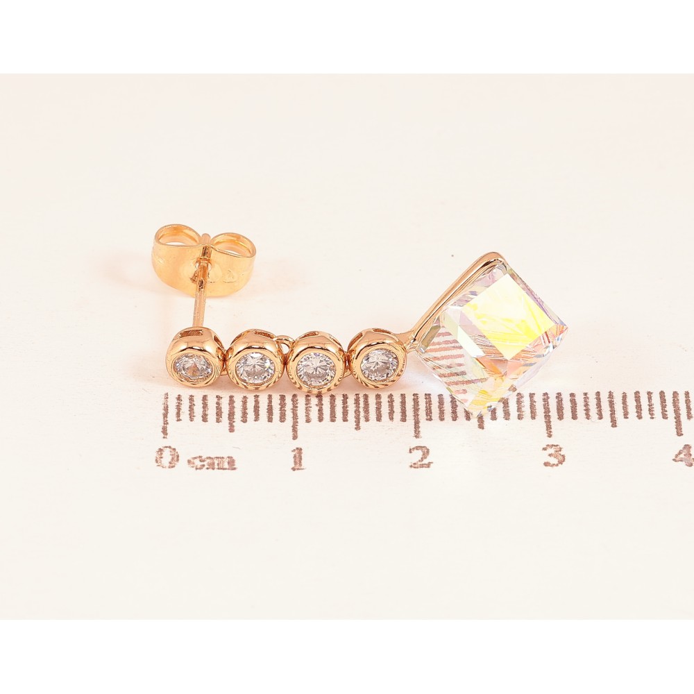 Сережки Xuping колір 18K з кристалами Swarovski пусети "Куб Shimmer на круглих кристалах"