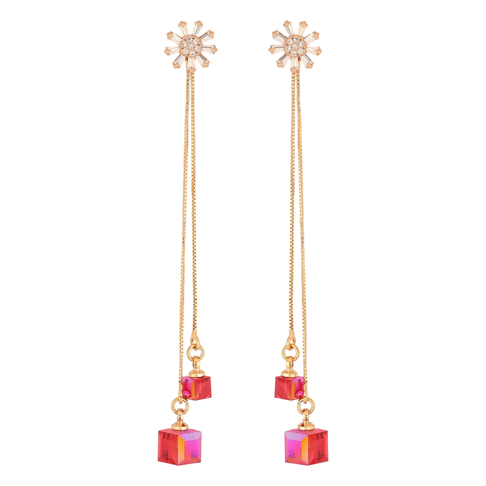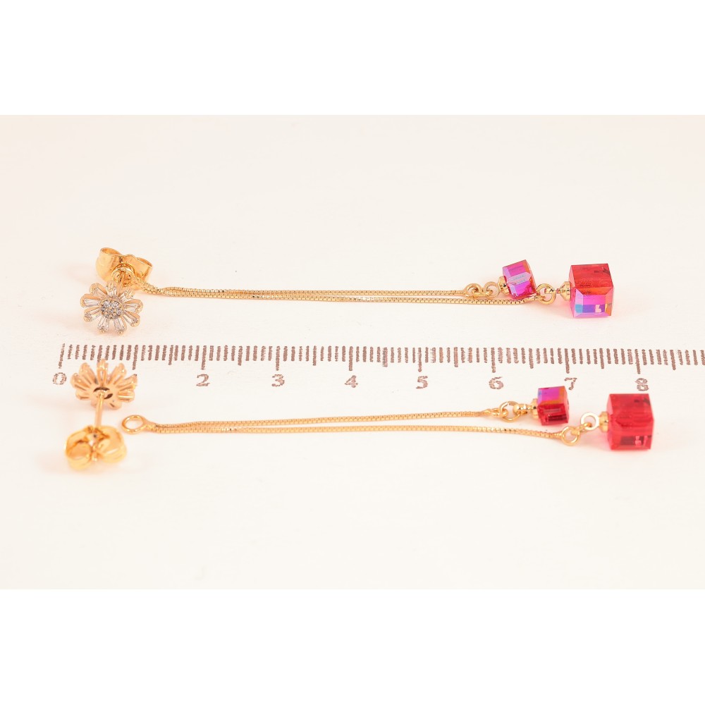Сережки Xuping колір 18K з кристалами Swarovski пусети "Квіточки з кристалами Scarlet на ланцюжку"