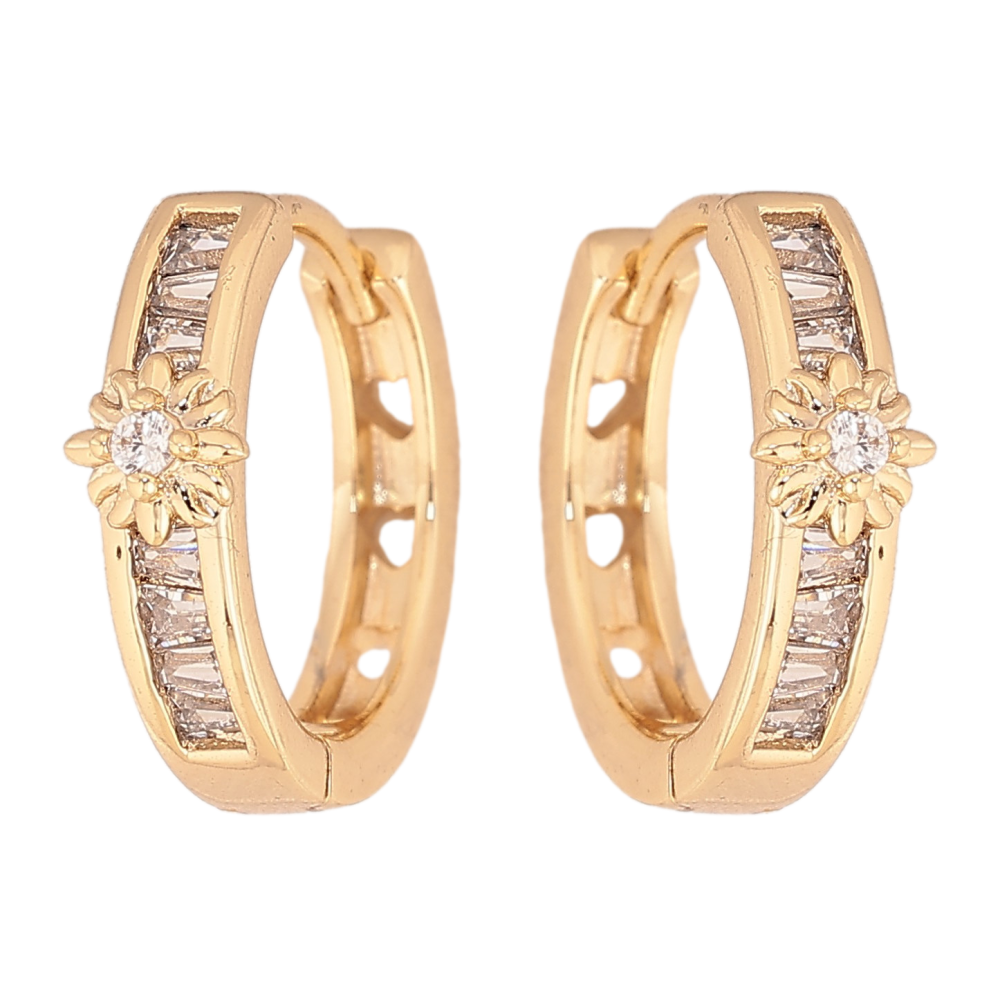 Сережки Xuping колір Позолота 14K колечка "Дорожки кристалів з квіточками"