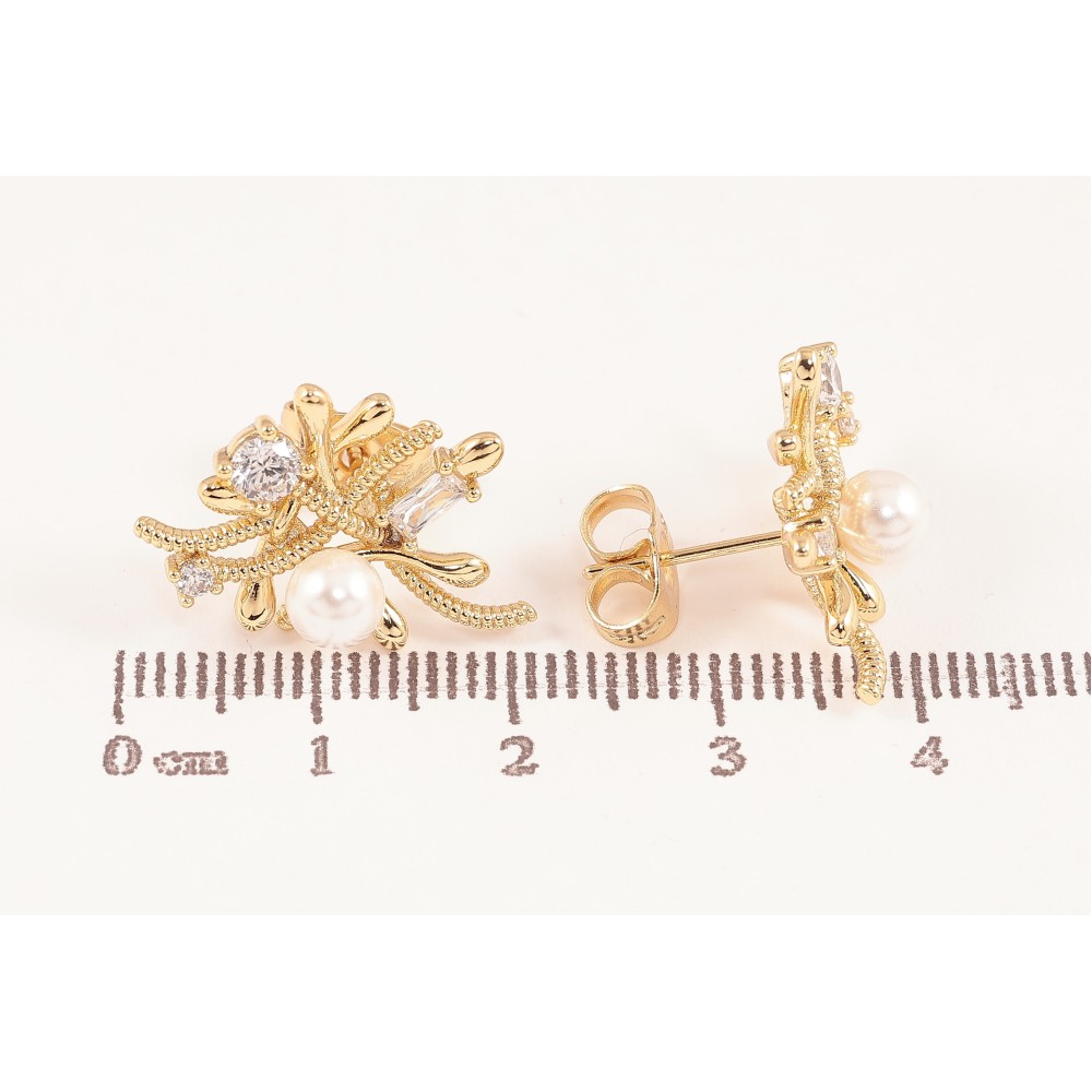 Сережки Xuping колір Позолота 14K пусети "Декоративний візерунок з кристалами та перлинами"